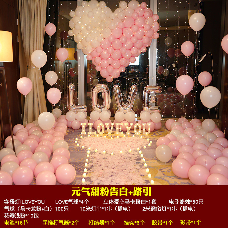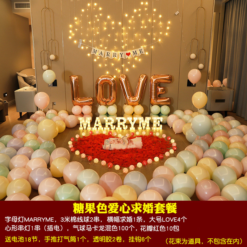 프러포즈 소품, 로맨틱 서프라이즈 장면, 창의적인 레이아웃 패키지, 장식 레터링, 고백, 실내 520 발렌타인 데이스토어 가기