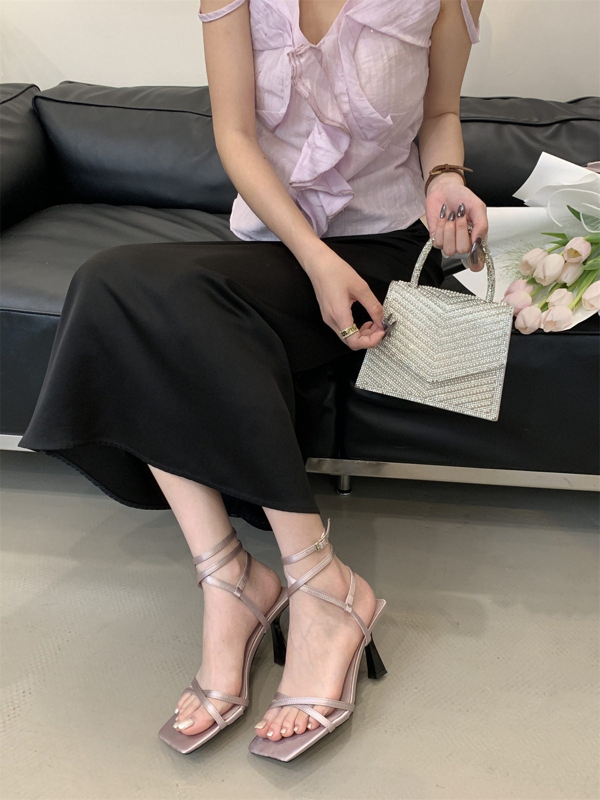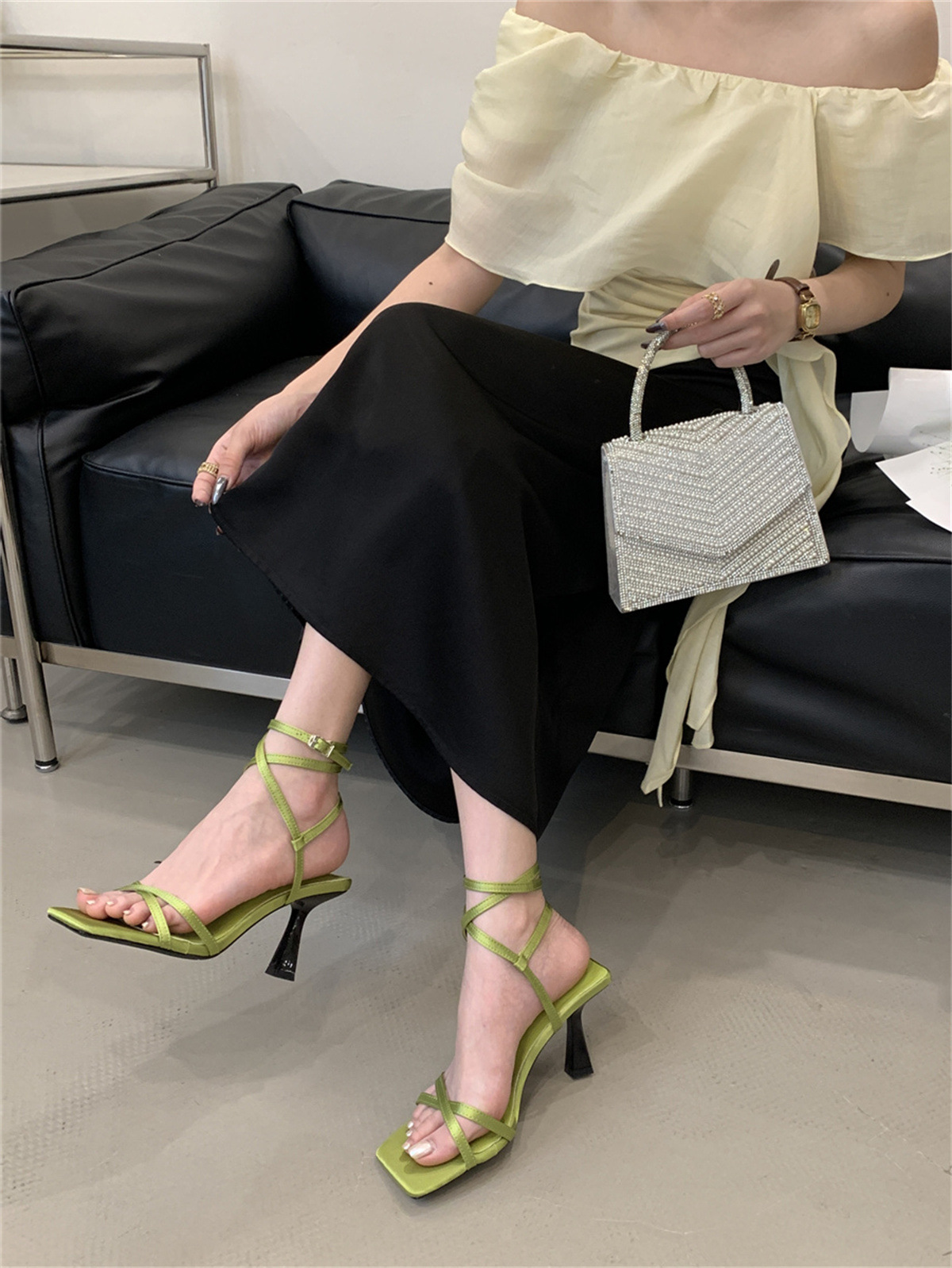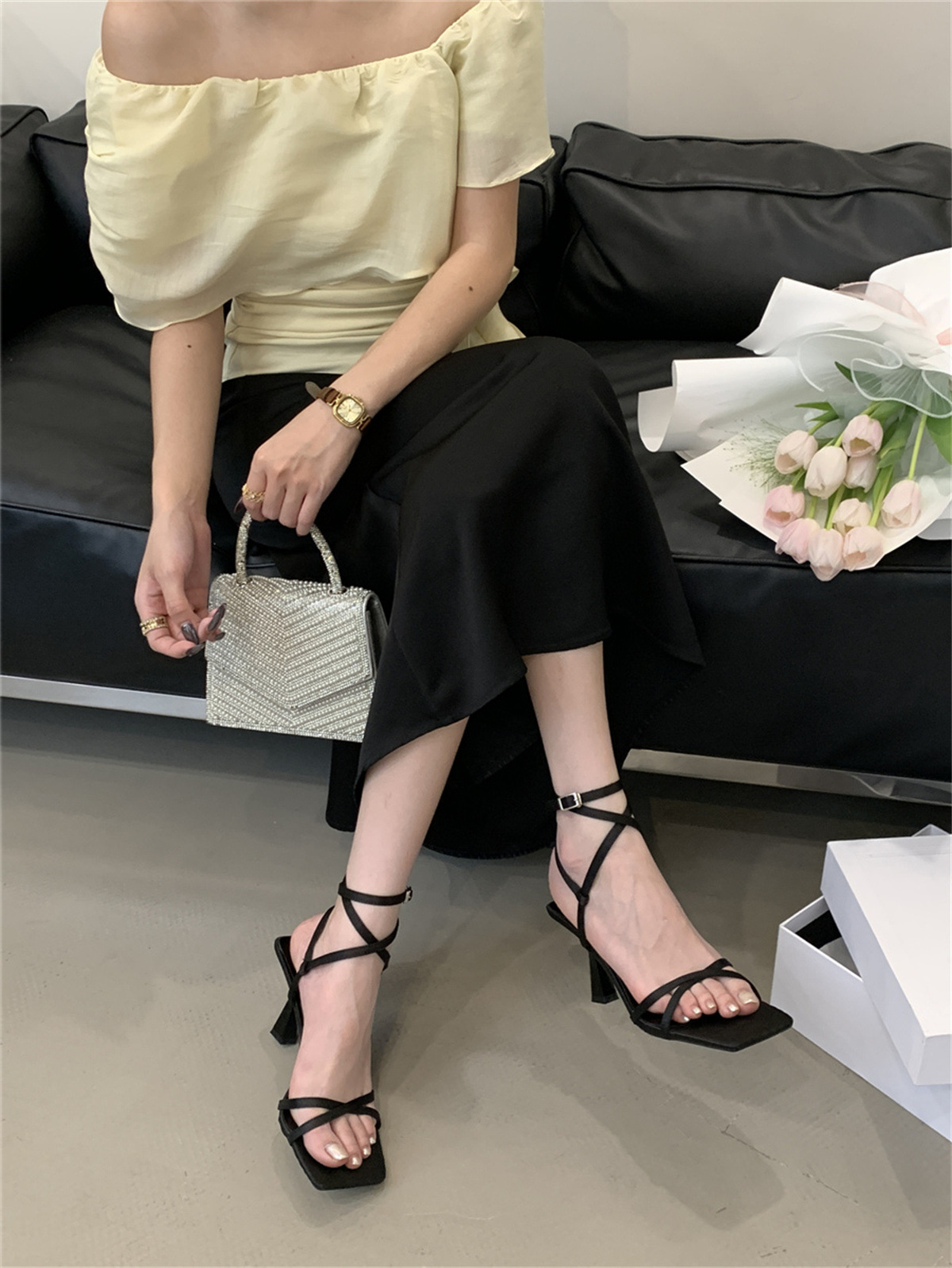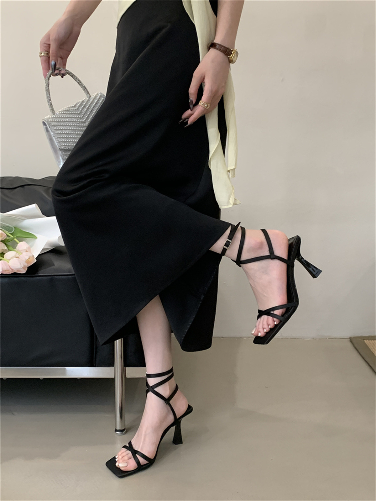 2025년 여름 신상 블랙 원라인 스퀘어토 하이힐 여성 스틸레토 샌들, 오픈토로 활용도 높음