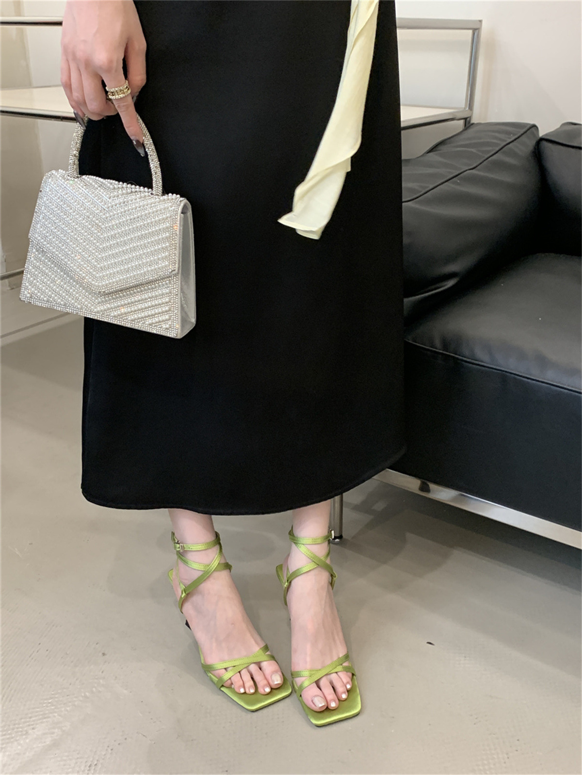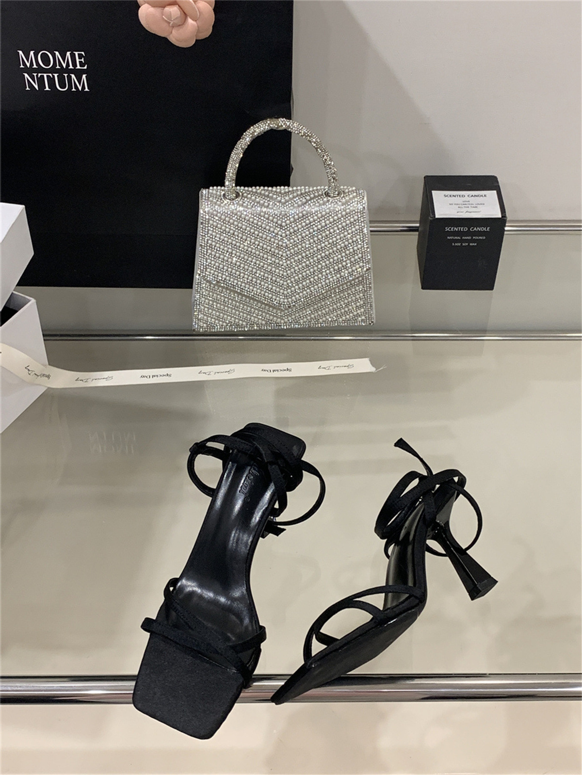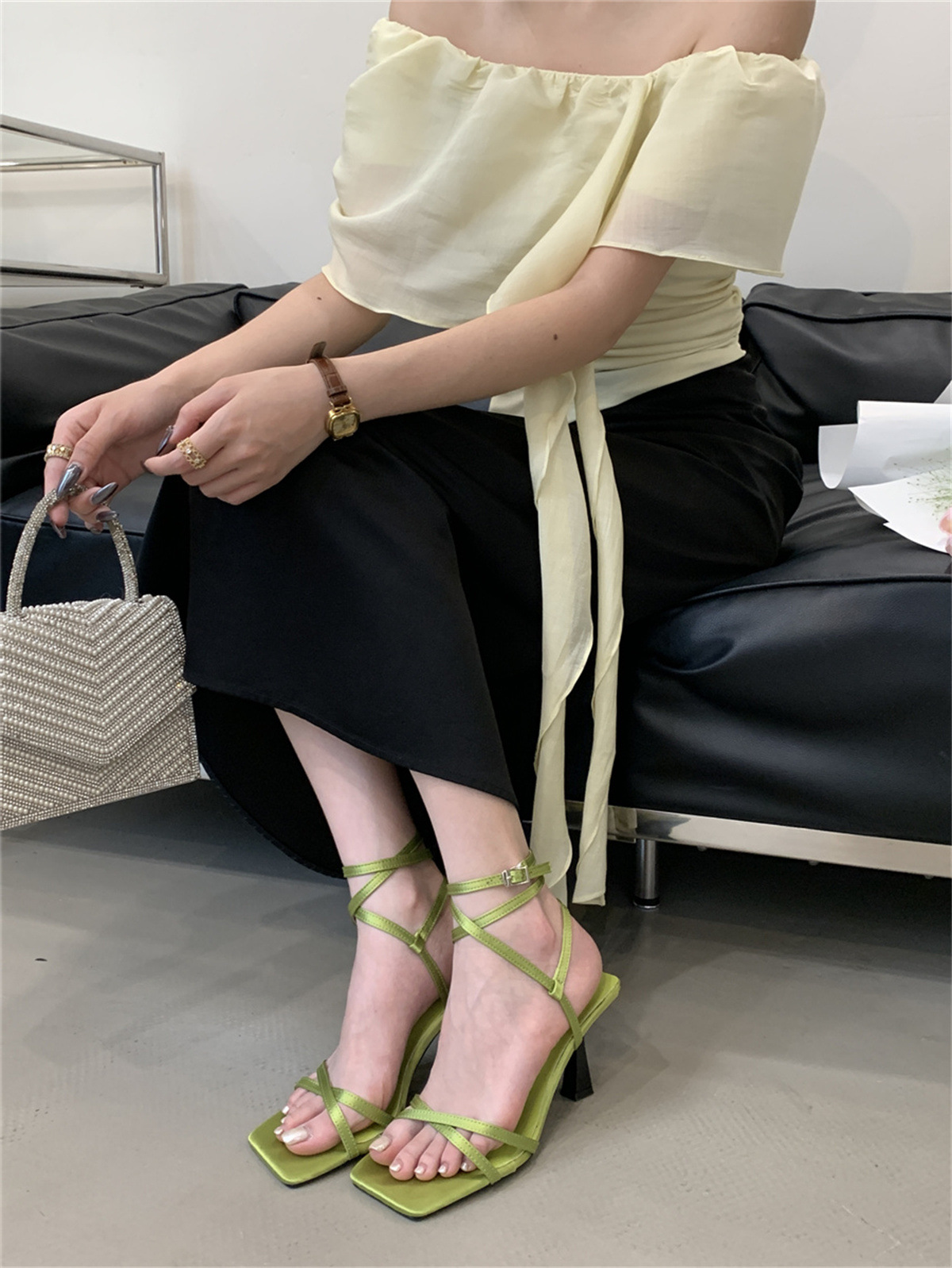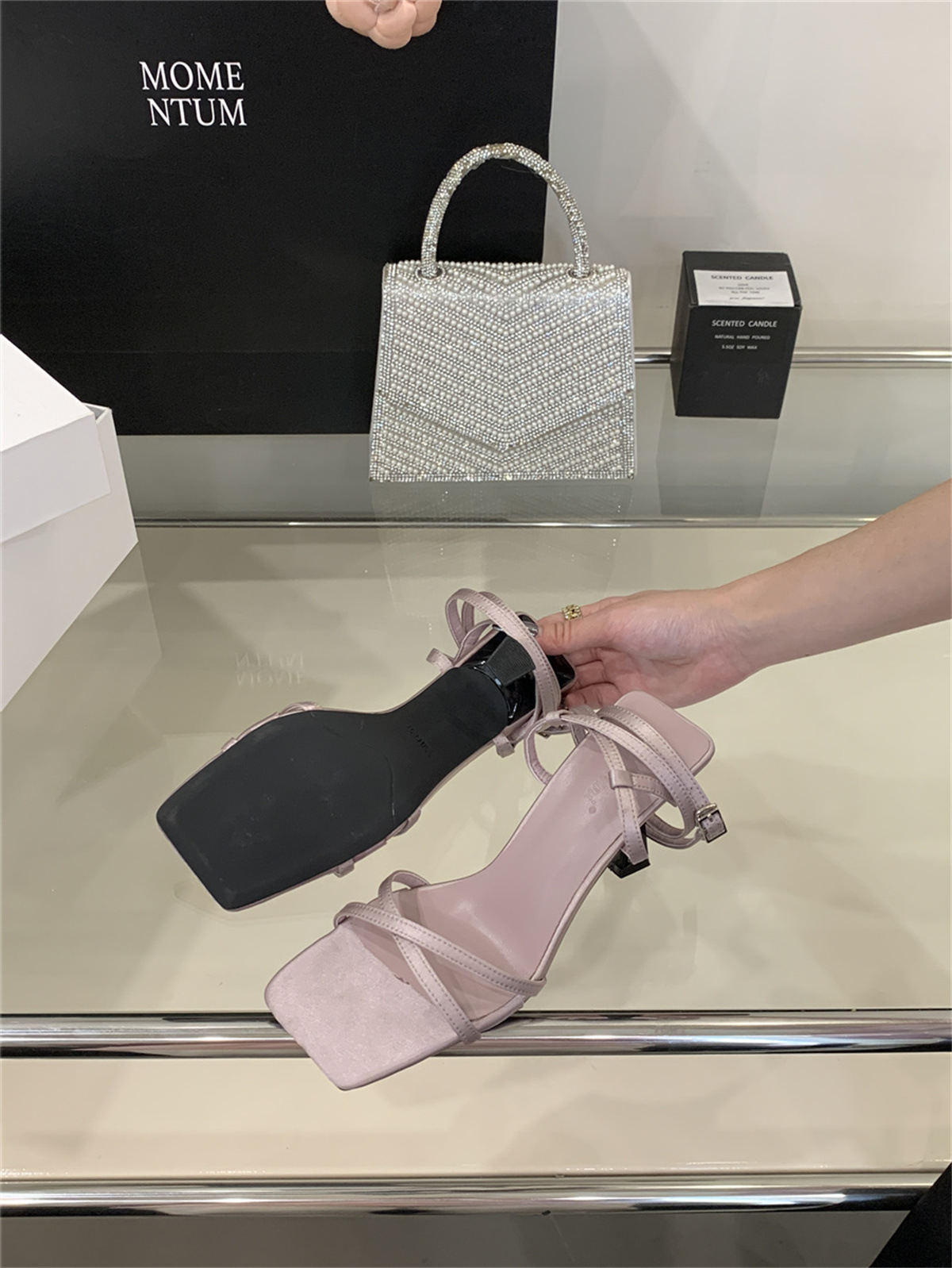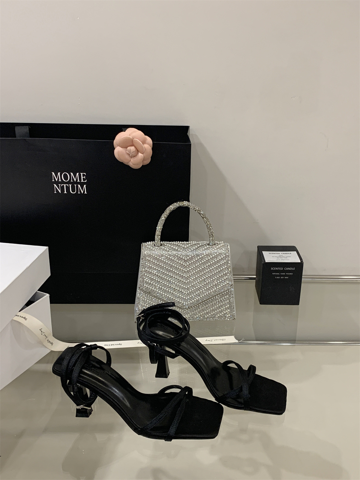 2025년 여름 신상 블랙 원라인 스퀘어토 하이힐 여성 스틸레토 샌들, 오픈토로 활용도 높음
