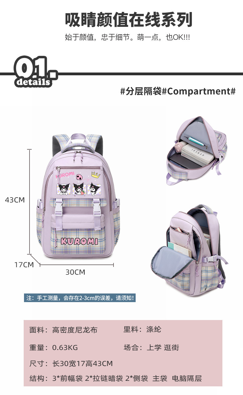 초등학생 3~4학년 여아를 위한 산리오 책가방, 척추 보호대, 귀여운 어린이 대용량 체중 감량 배낭