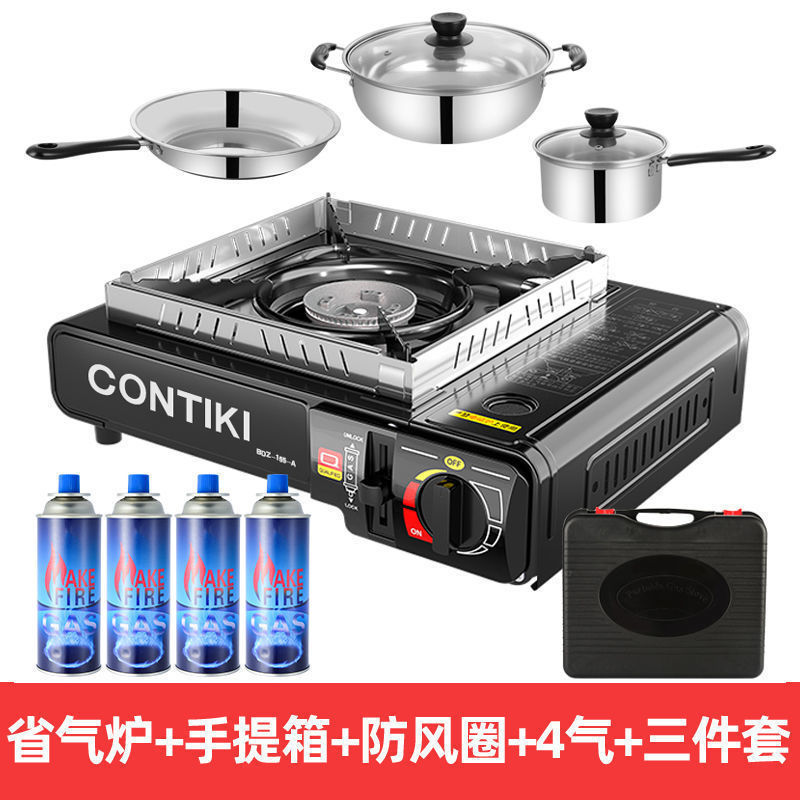 • 일회용 난로 + 방풍링 + 여행가방 + 가스 4병 + 수프 냄비 ★