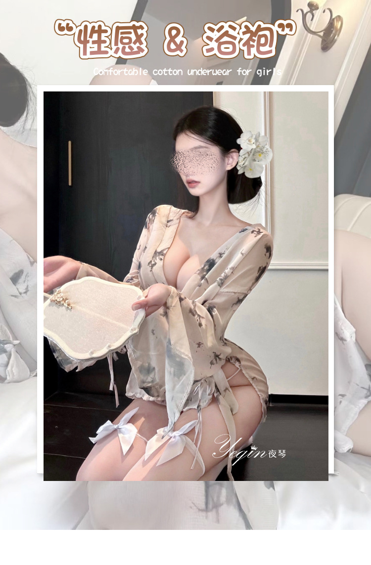 야기 섹시 속옷 작은 가슴 매력적인 여성 섹시한 나비 프린트 시스루 딥 V 기모노 잠옷 잠옷 7559스토어 가기