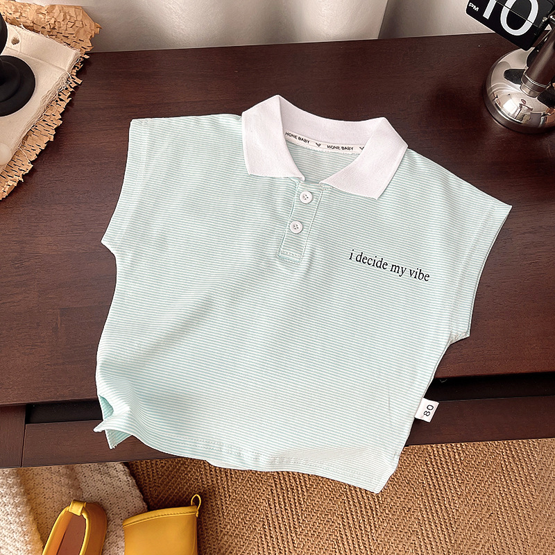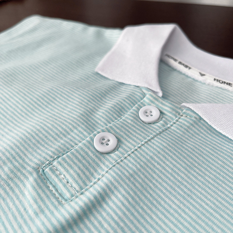 Ins 한국식 어린이 새 도착 세트 여름 소년 신사 폴로 캐주얼 아기 줄무늬 토끼 옷 유행 한국어 1