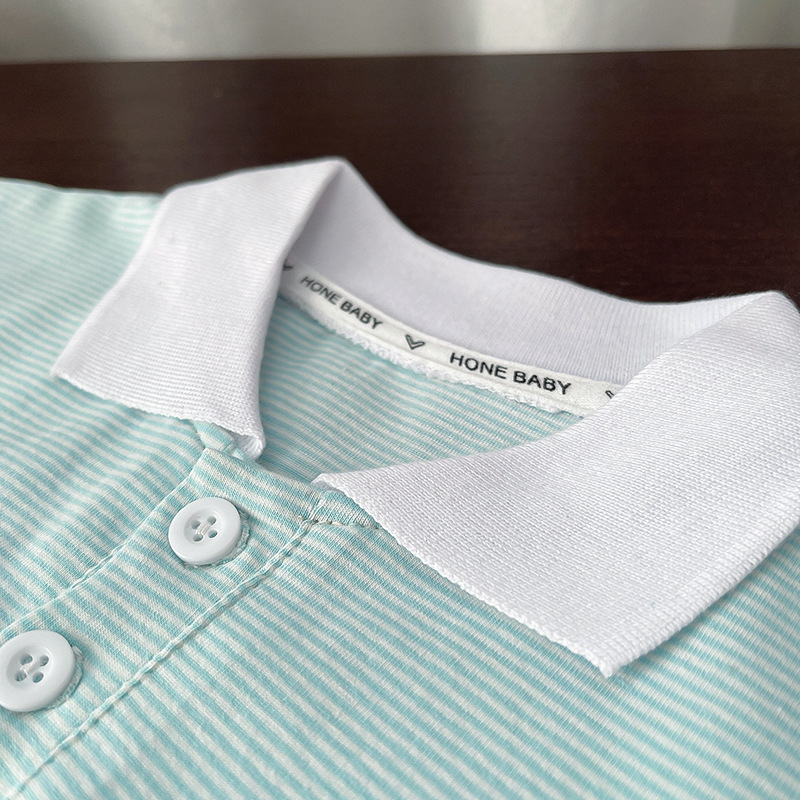 Ins 한국식 어린이 새 도착 세트 여름 소년 신사 폴로 캐주얼 아기 줄무늬 토끼 옷 유행 한국어 1스토어 가기