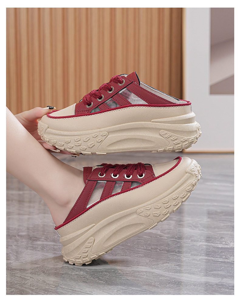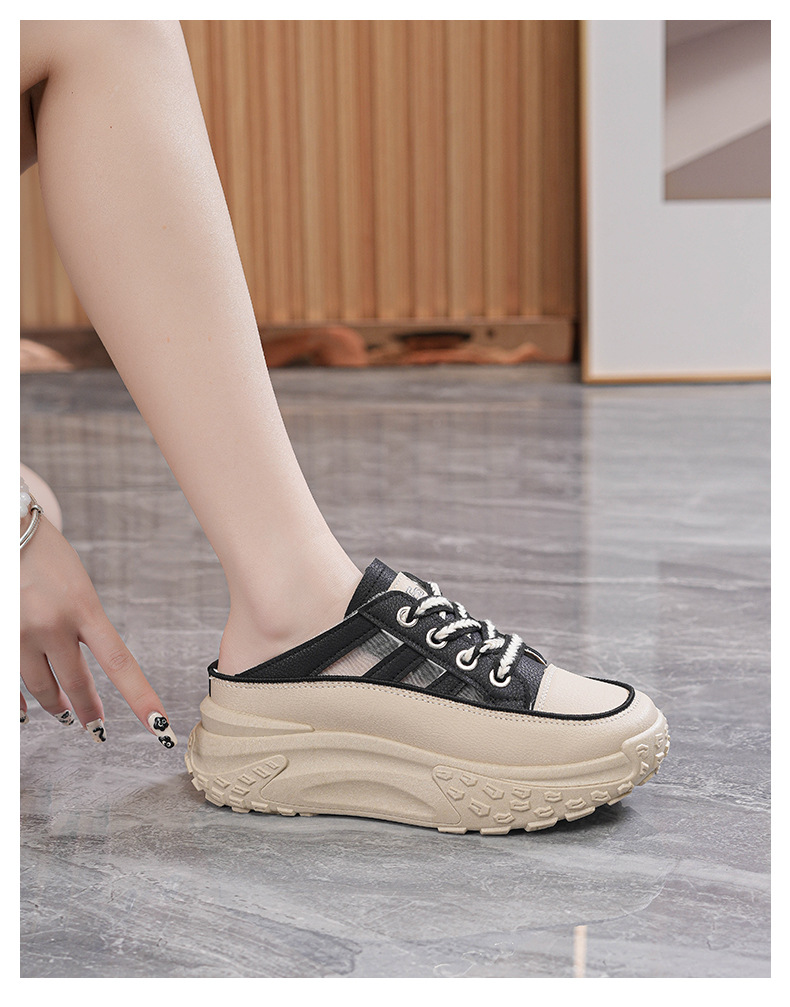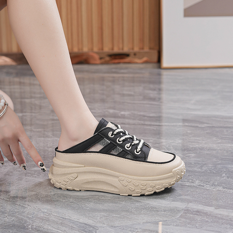 2025 여름 신작 바오터우 하프 슬리퍼 여성용 한국 스타일 패션 캐주얼 샌들 슬립 온 두꺼운 밑창 신발 YP901