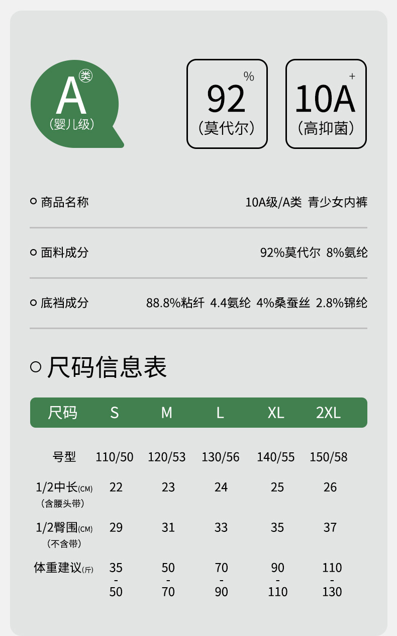 클래스 A 어린 소녀 10A 박테리아 속옷 모달 중 허리 여성 속옷 여성 속옷 여성용 긴 크로트 소녀 브리프스토어 가기