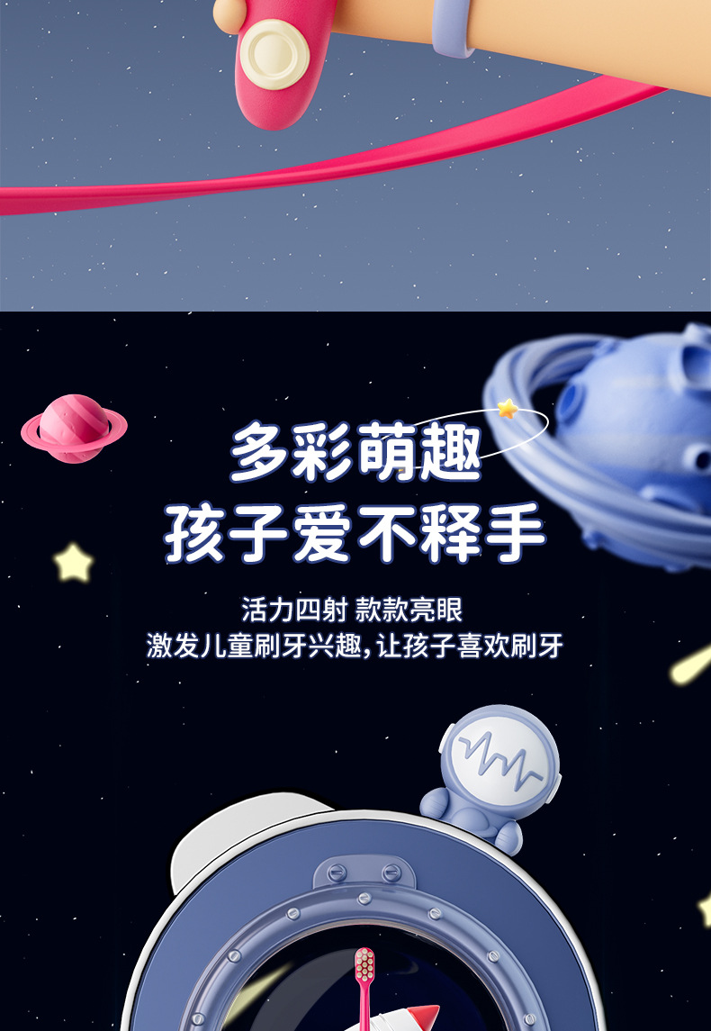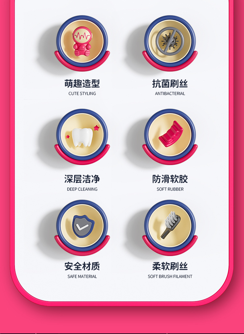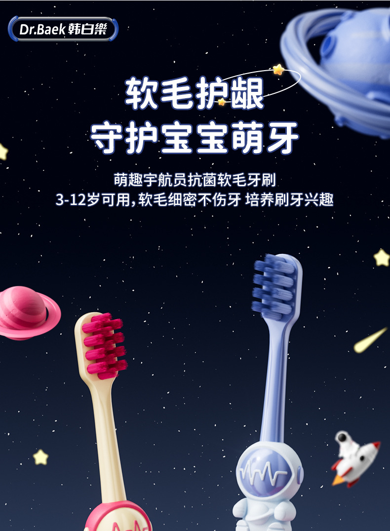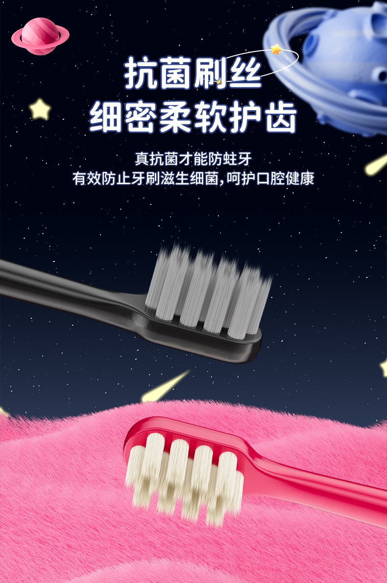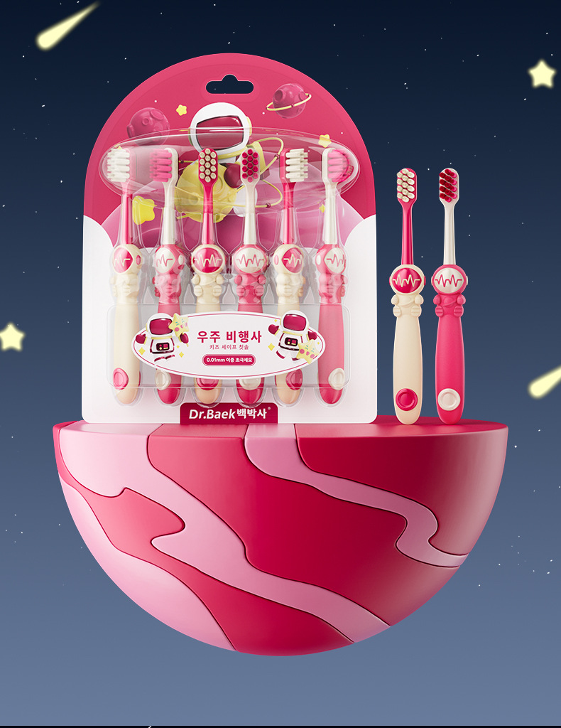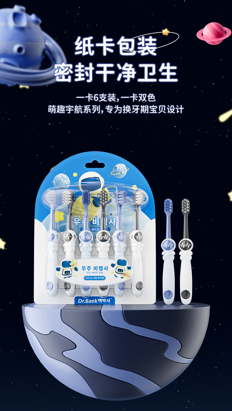 [6개 팩] 귀여운 우주 비행사 어린이 칫솔 6-12세 고급 부드러운 강모 은 이온 항균 칫솔 도매