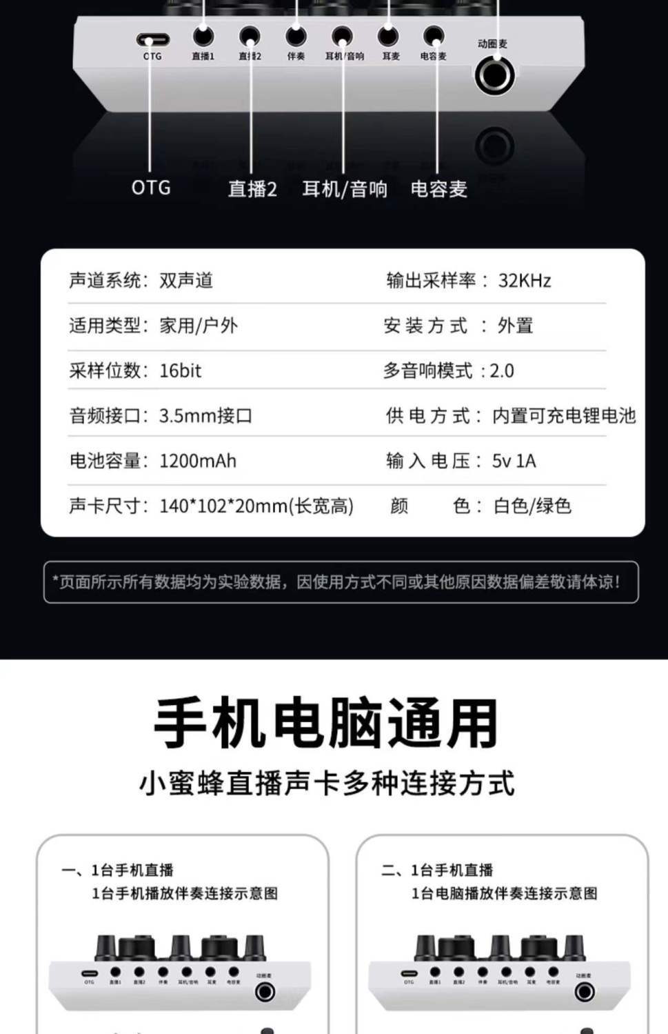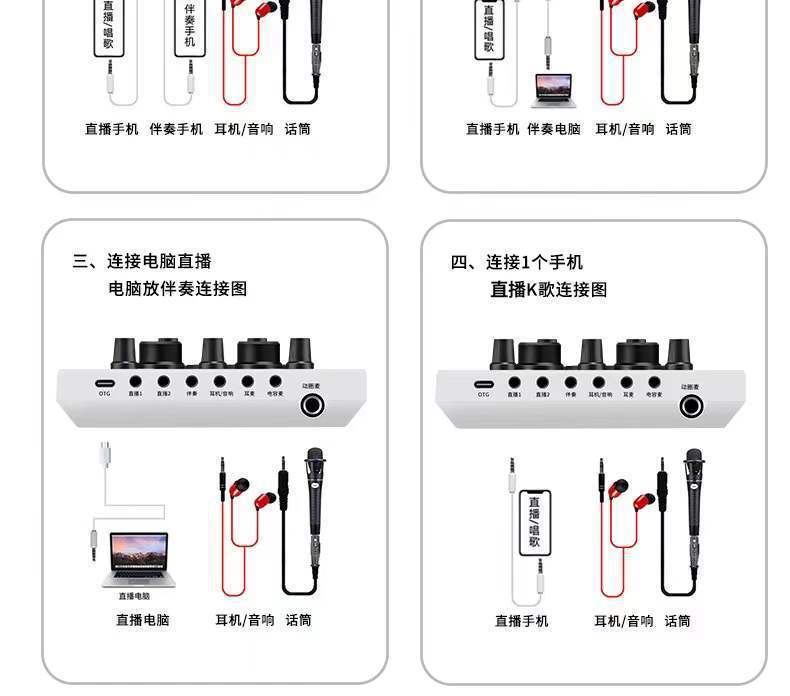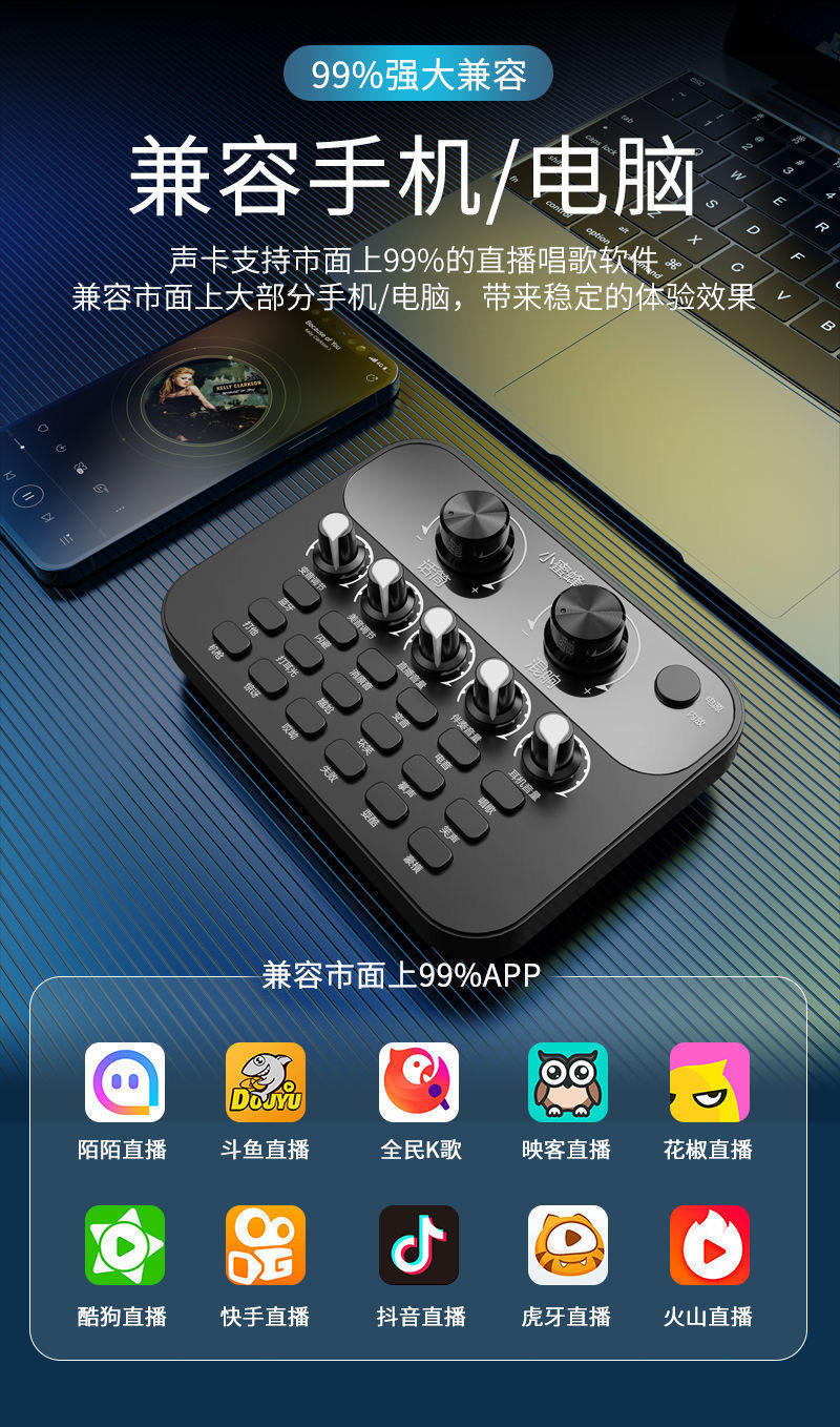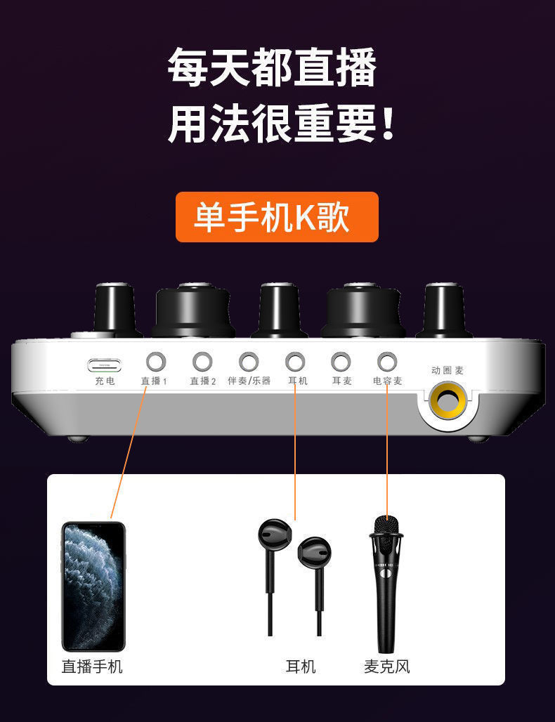 휴대 전화 및 컴퓨터 범용 라이브 방송 사운드 카드 음성 변환기 장비 풀 세트 마이크 K 노래 마이크 앵커 무역