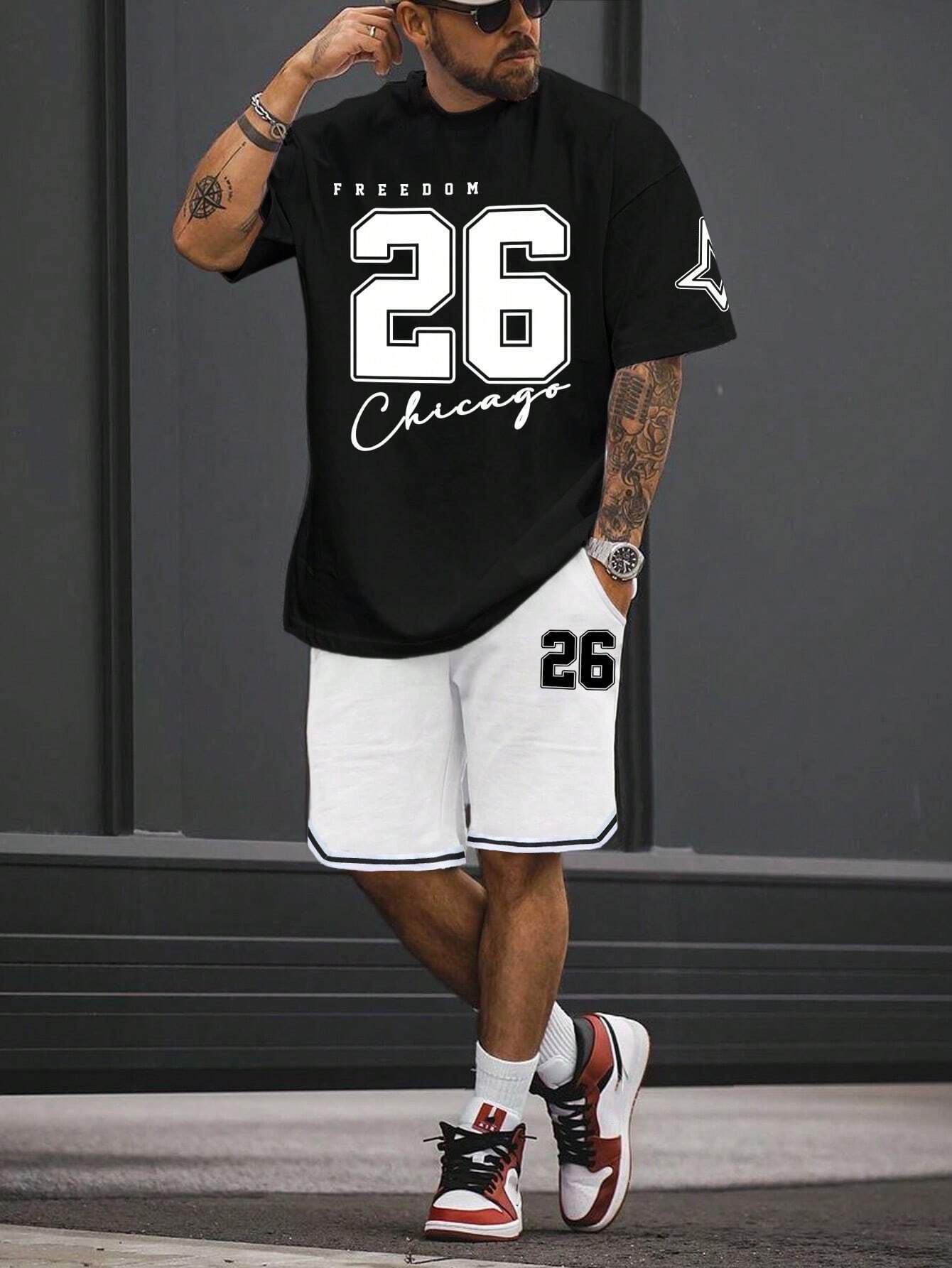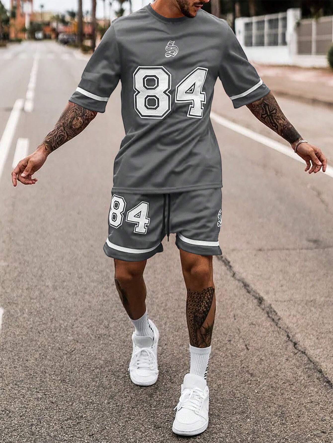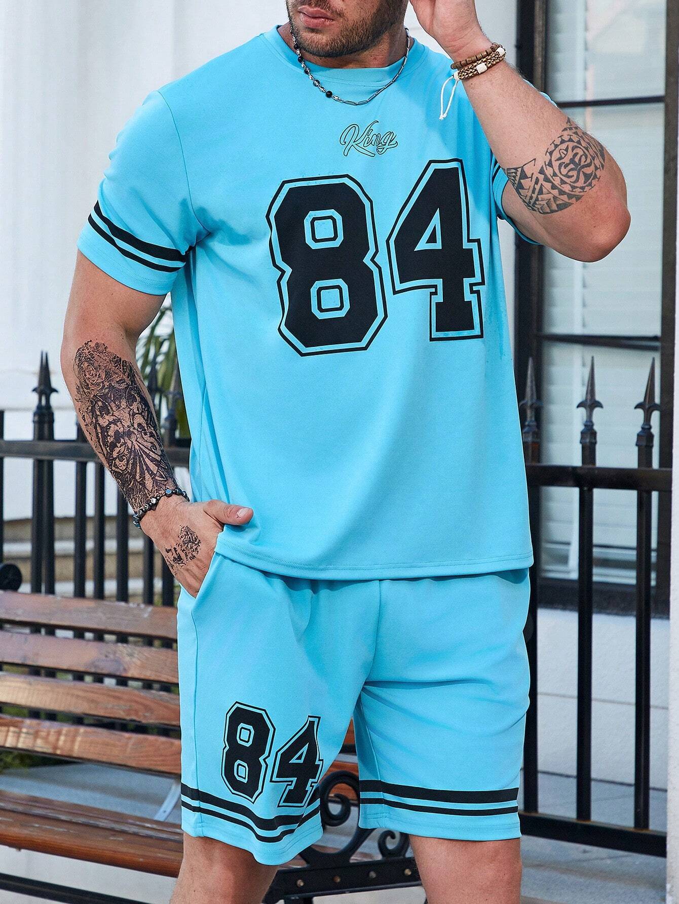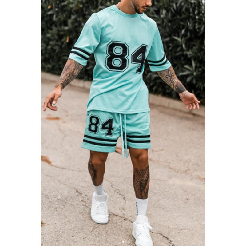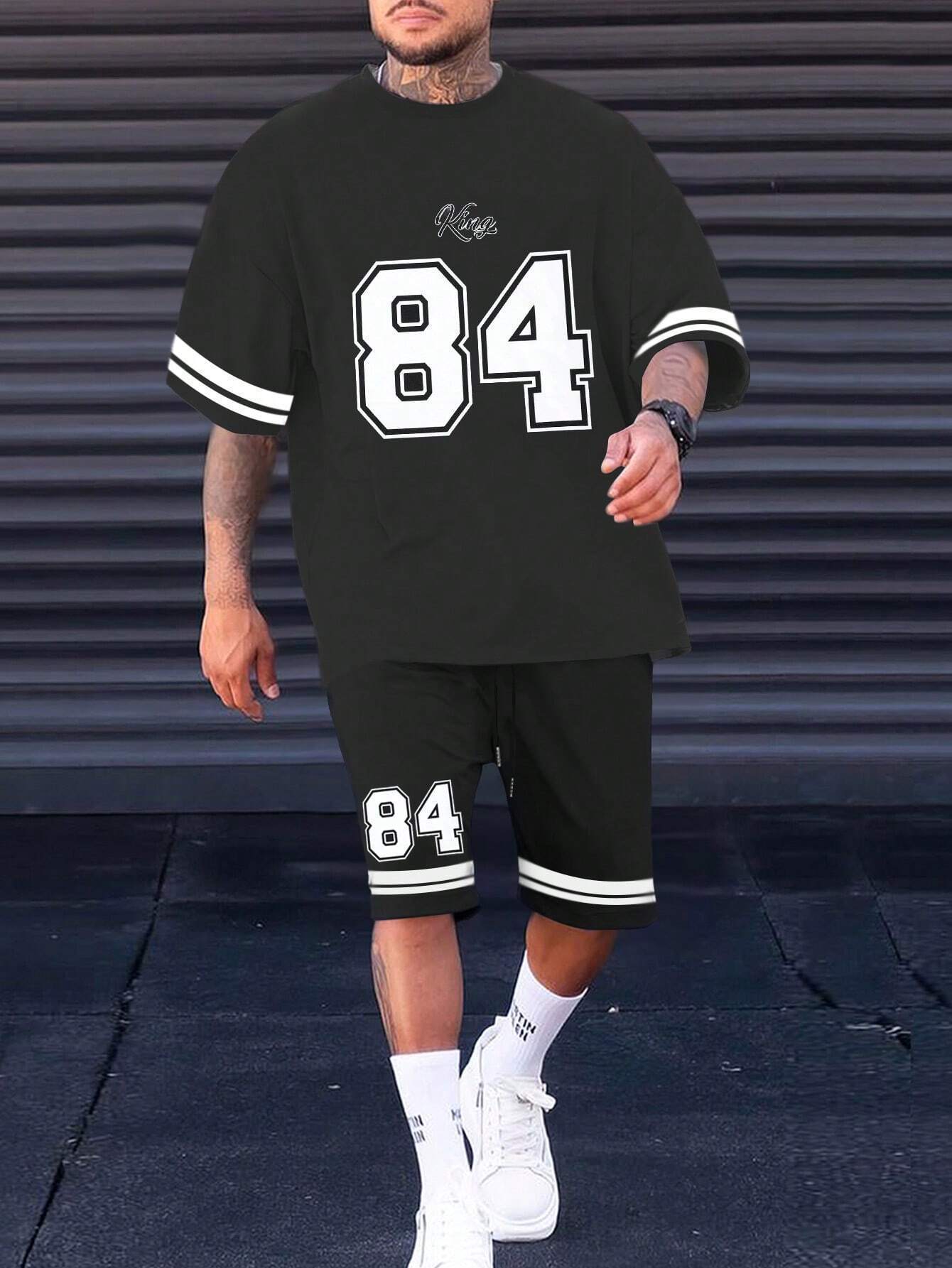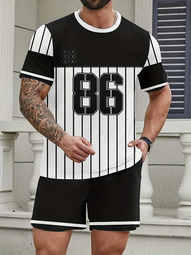 국경 간 TEMU 반팔 티셔츠 세트 남성 여름 대외 무역 새로운 패션 84 26 스포츠 인쇄 투피스 세트