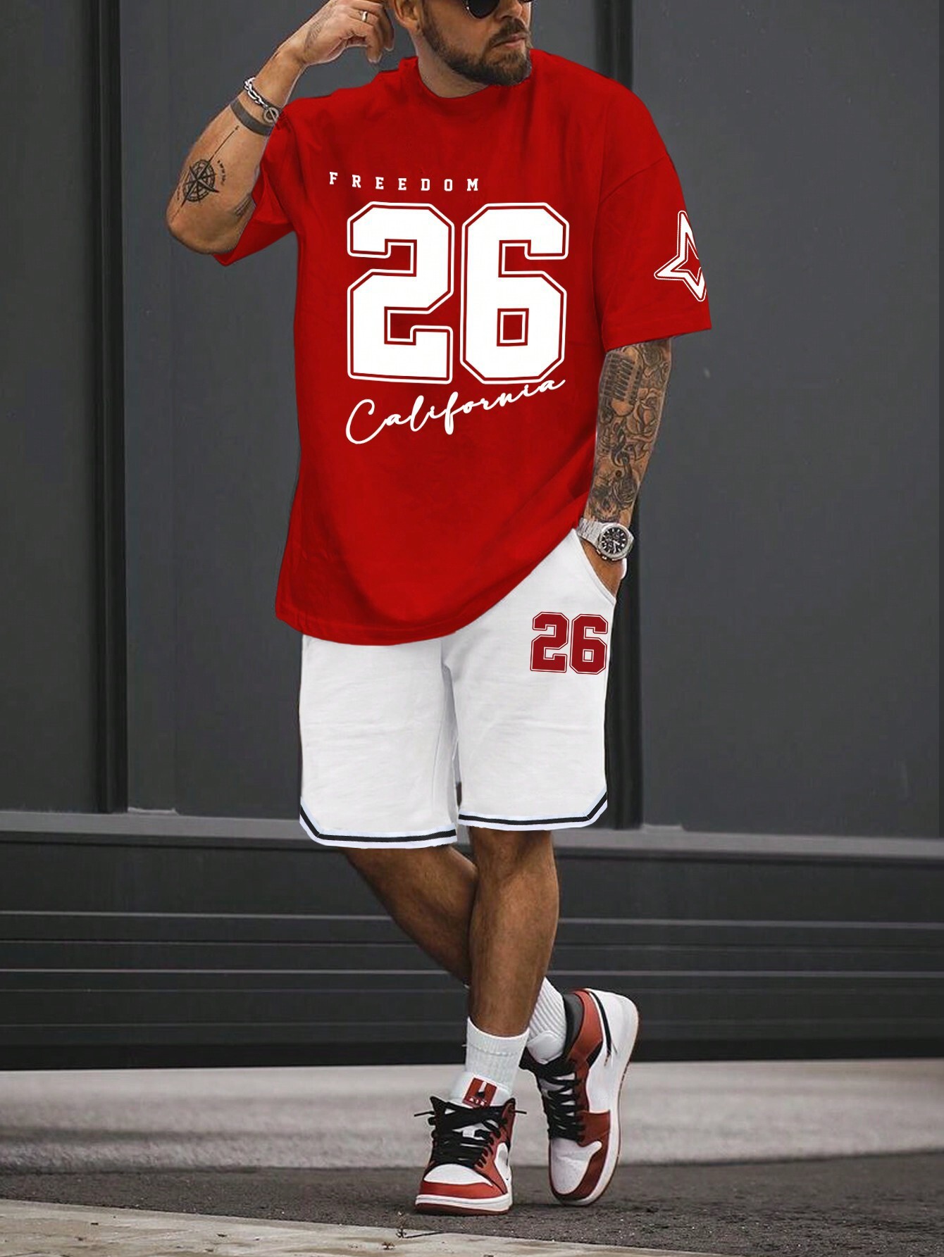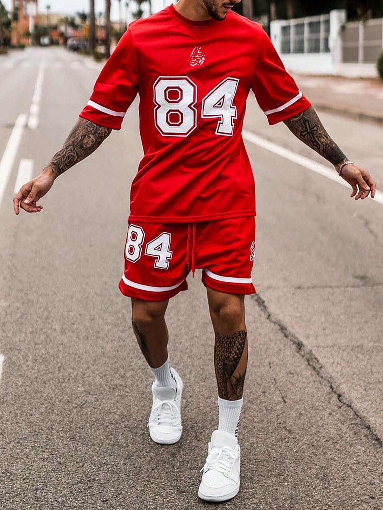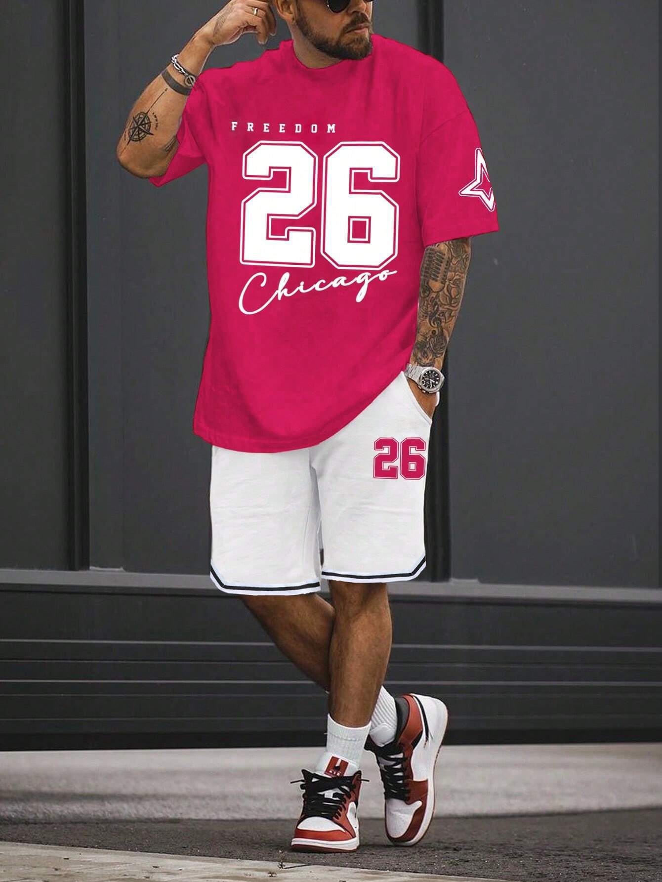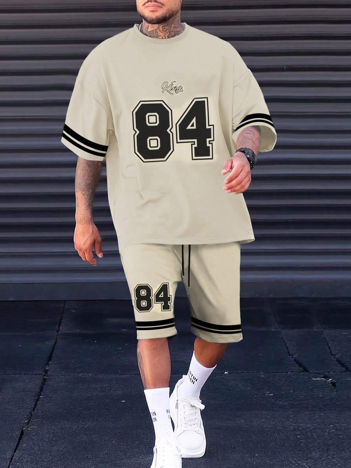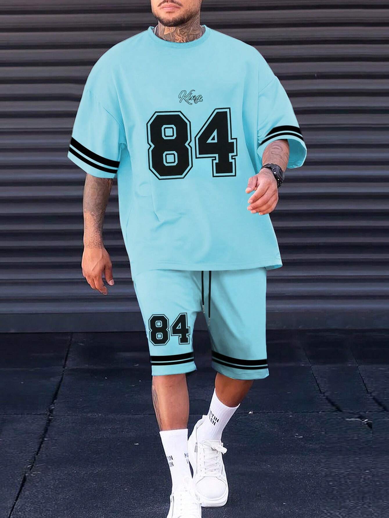 국경 간 TEMU 반팔 티셔츠 세트 남성 여름 대외 무역 새로운 패션 84 26 스포츠 인쇄 투피스 세트
