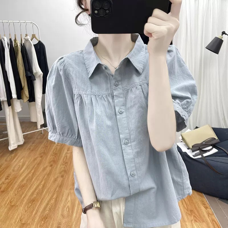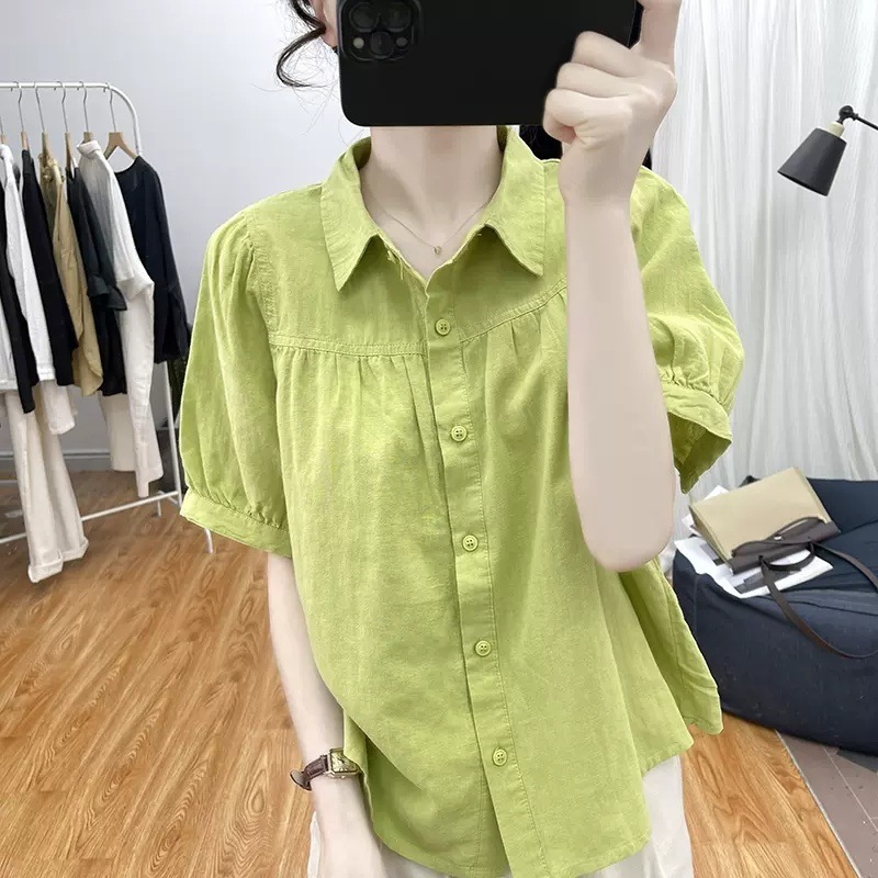 봄과 여름 2025 뉴 코튼 앤 리넨 홍콩 스타일 디자인 센스 루즈 반팔 셔츠 여성의 유행 연령 감소 탑 올 매치스토어 가기