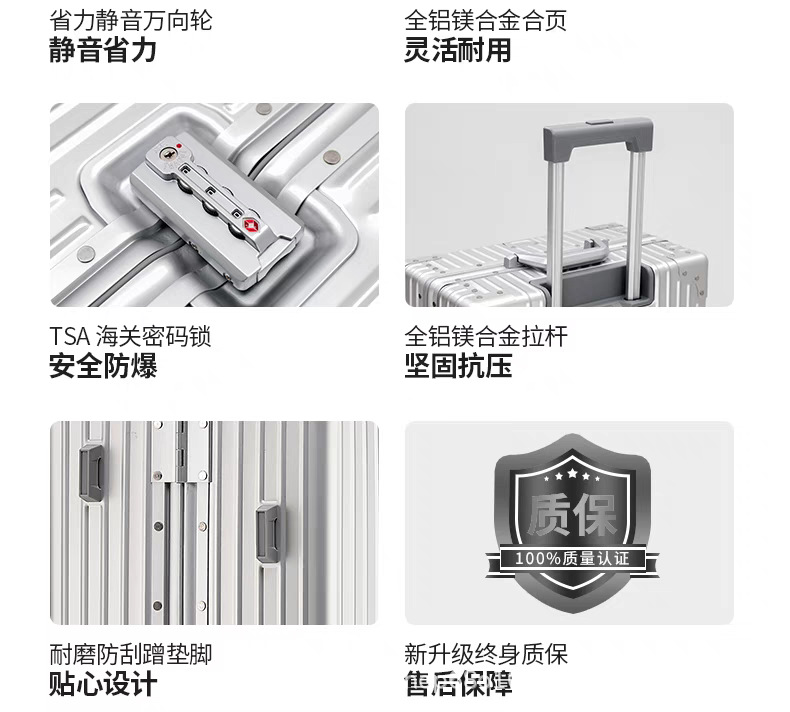 박스 24inch 금속 여행 가방 26inch 마그네슘 알루미늄 합금 케이스 20인치 28인치 비밀번호 잠금 휠 TSA 케이스 레트로 스타일