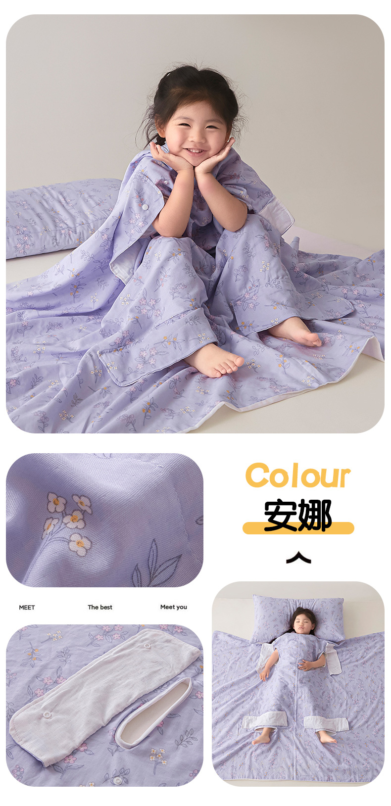 • A급 면 4겹 거즈 안티킥 여름 이불 - 안나