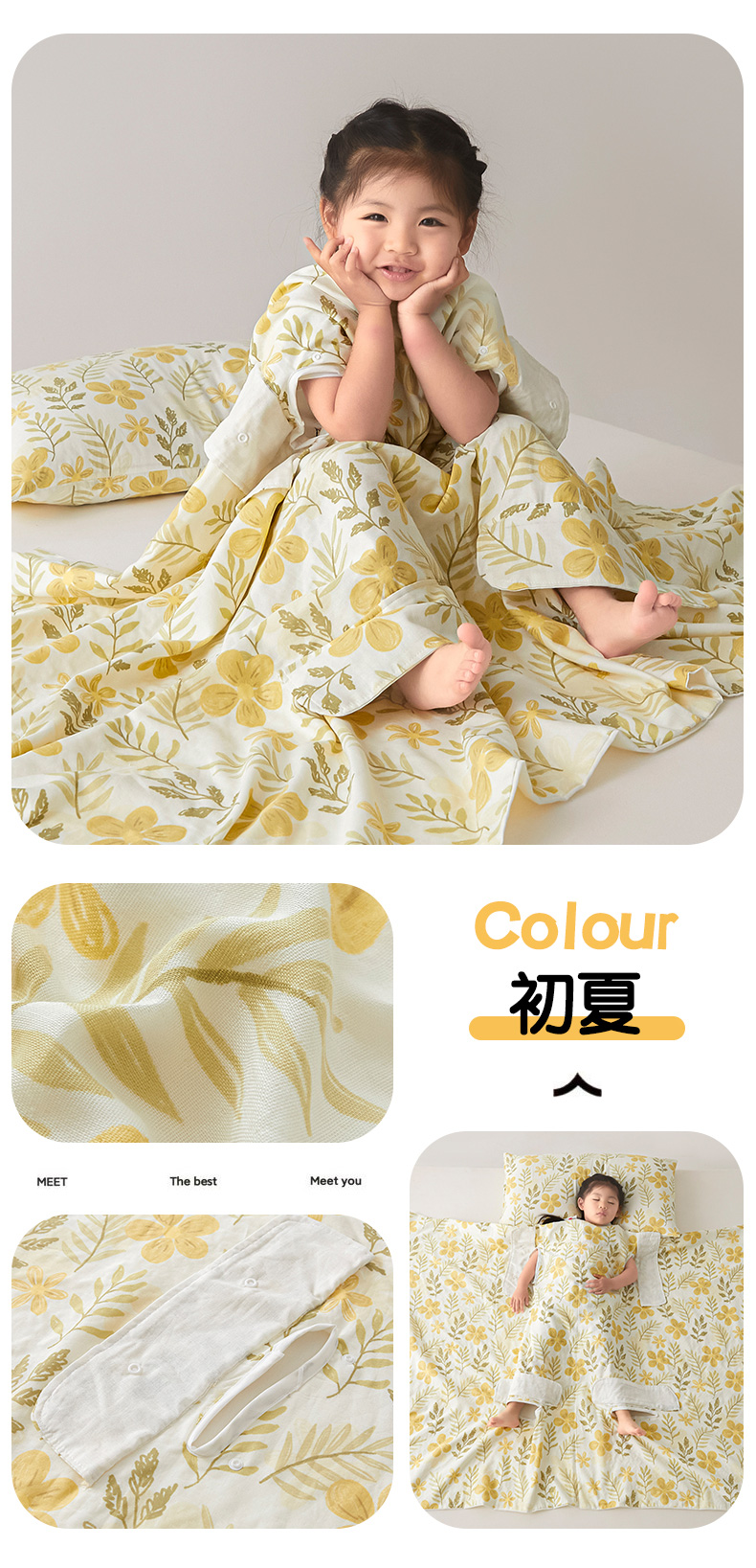 • 150x200cm 면 거즈 4겹 + 같은 스타일의 베갯잇 1개