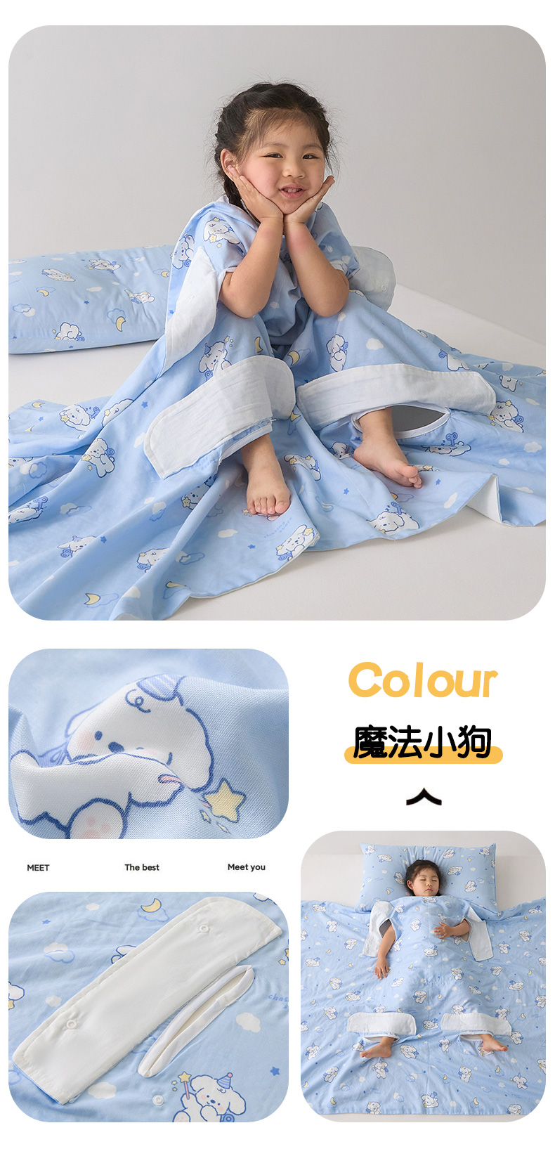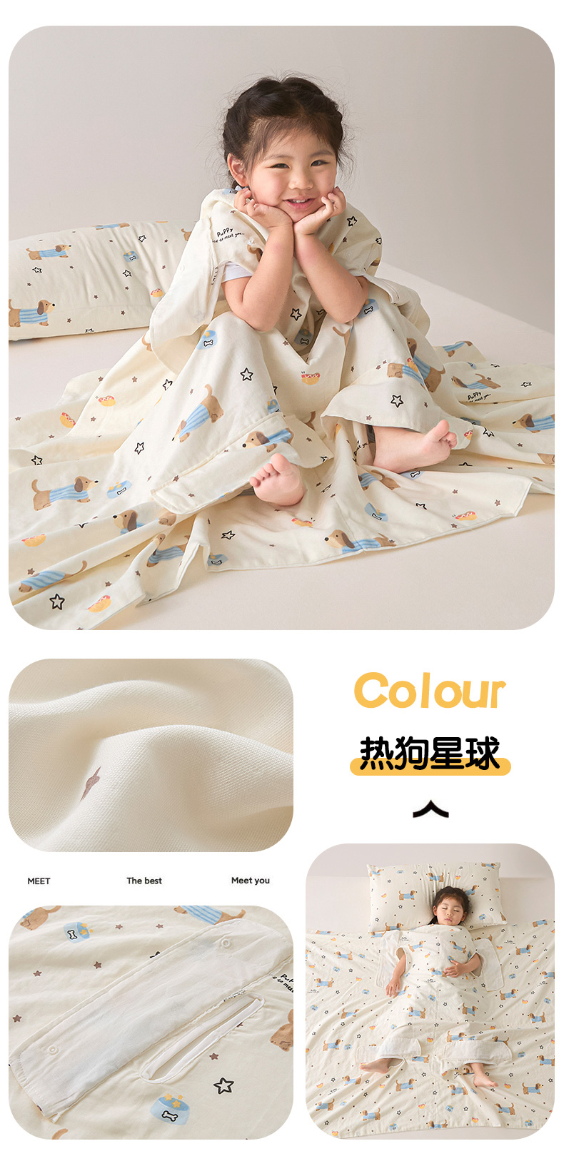 • A급 면 4겹 거즈 안티킥 여름 이불 - 매직퍼피