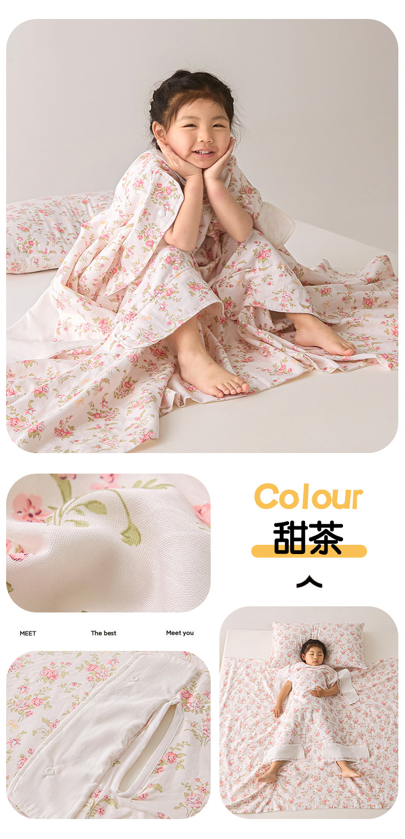 • 100x120cm 면 거즈 4겹 + 같은 스타일의 베갯잇 1개