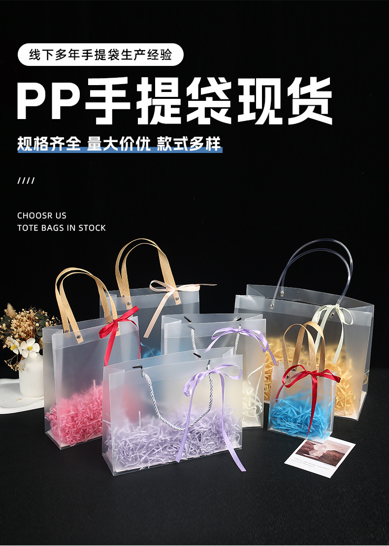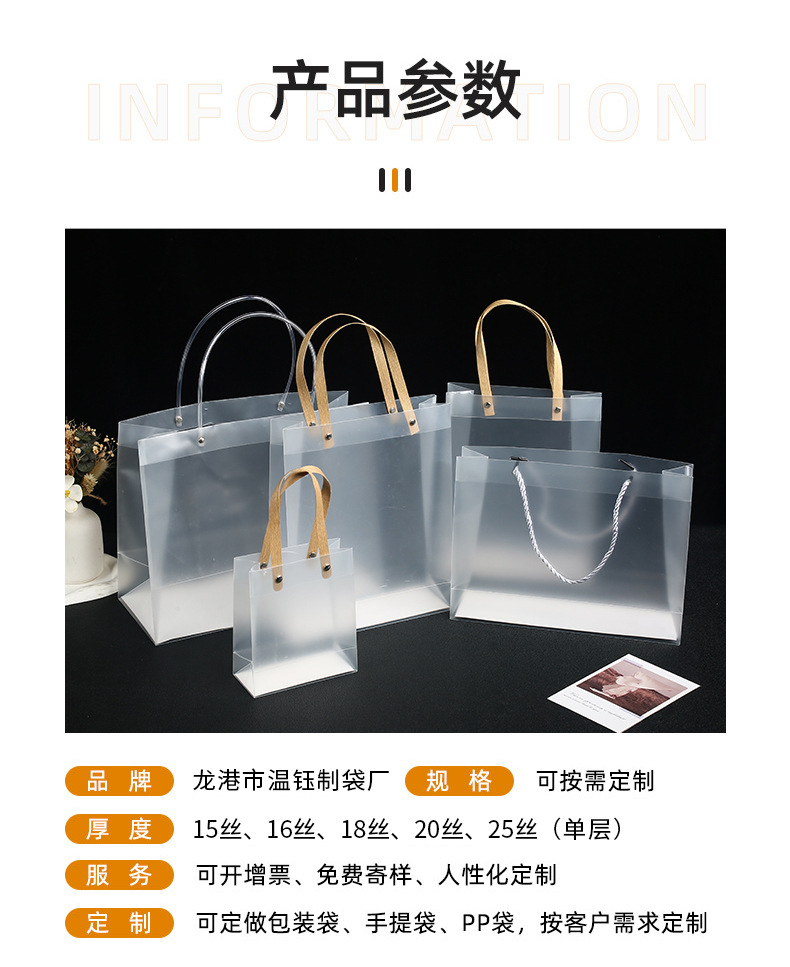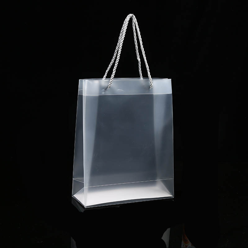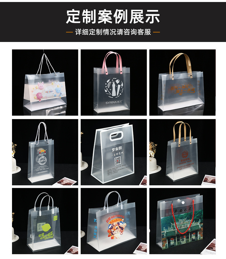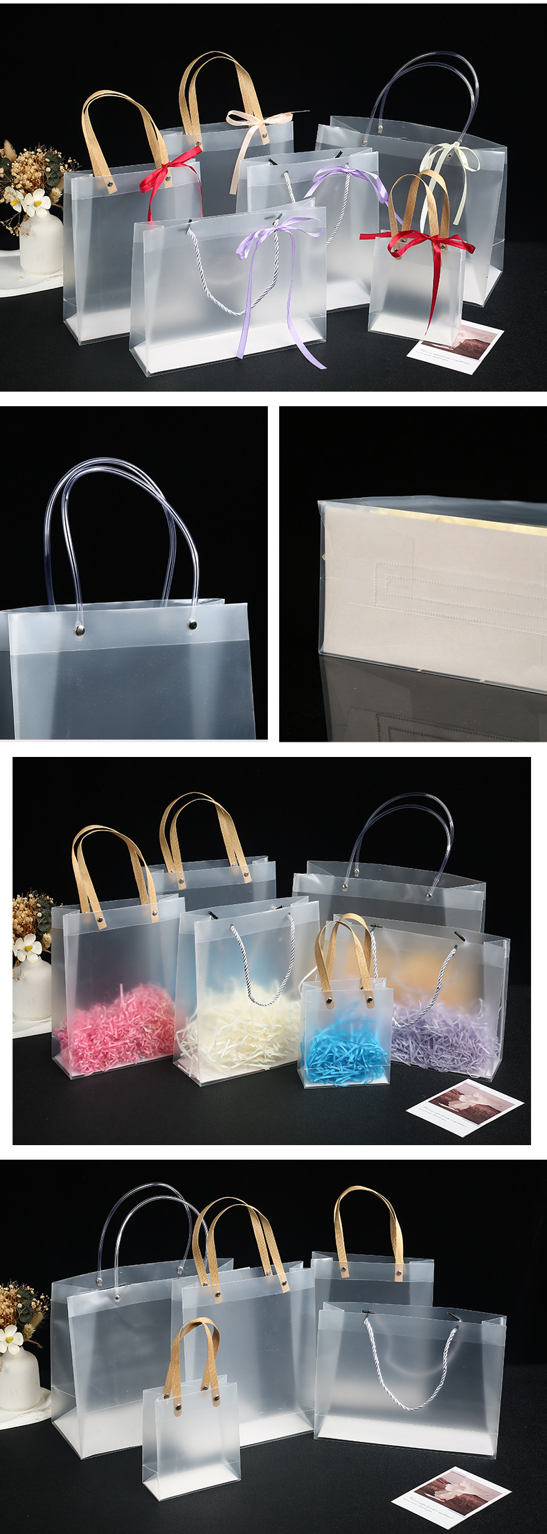 스팟 pp 핸드백 사용자 정의 투명 서리로 덥은 결혼식 생일 선물 가방 플라스틱 두꺼운 로고 선물 가방스토어 가기