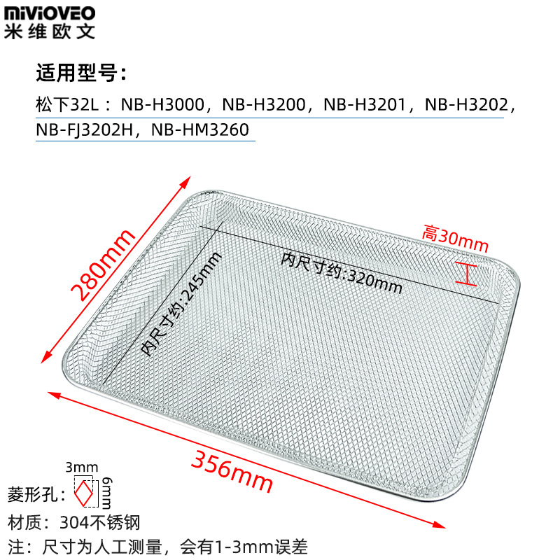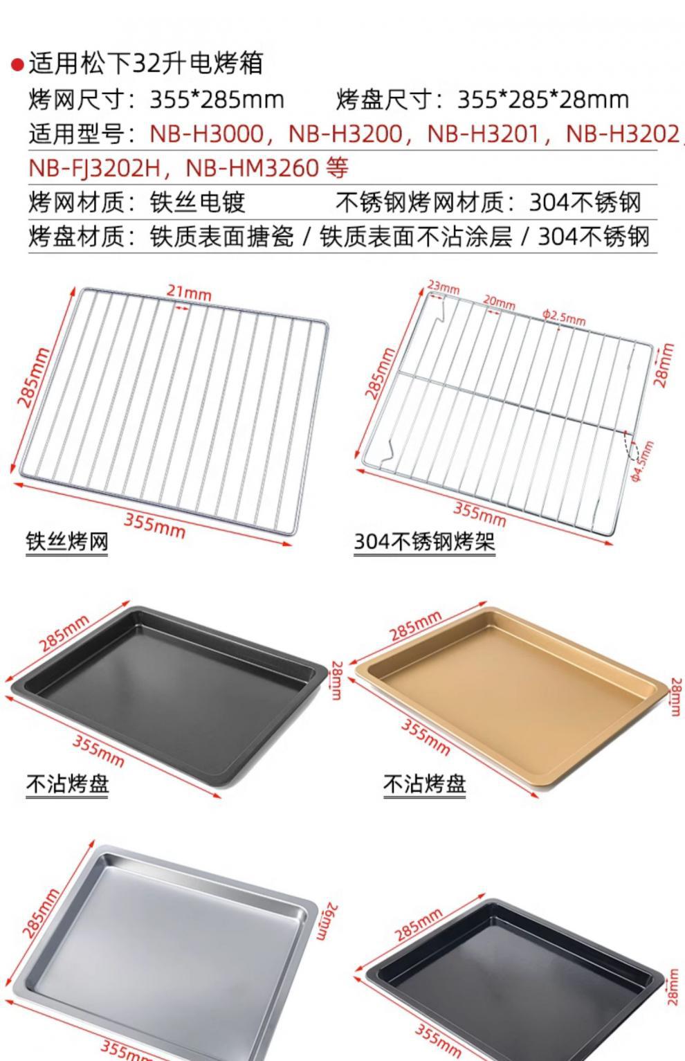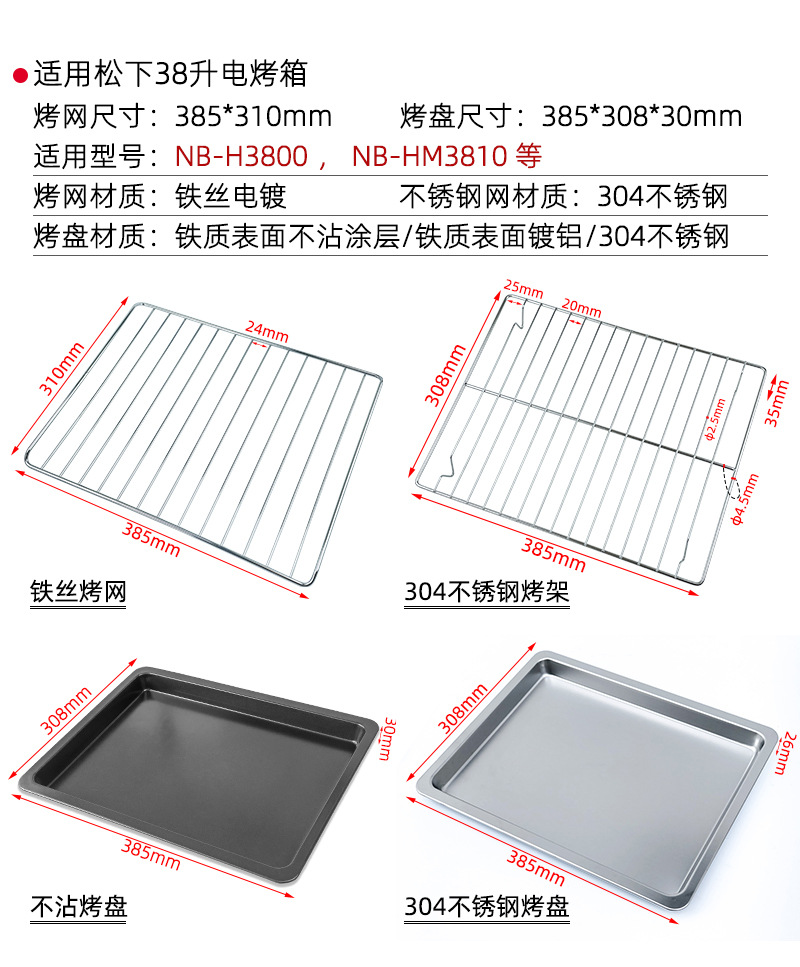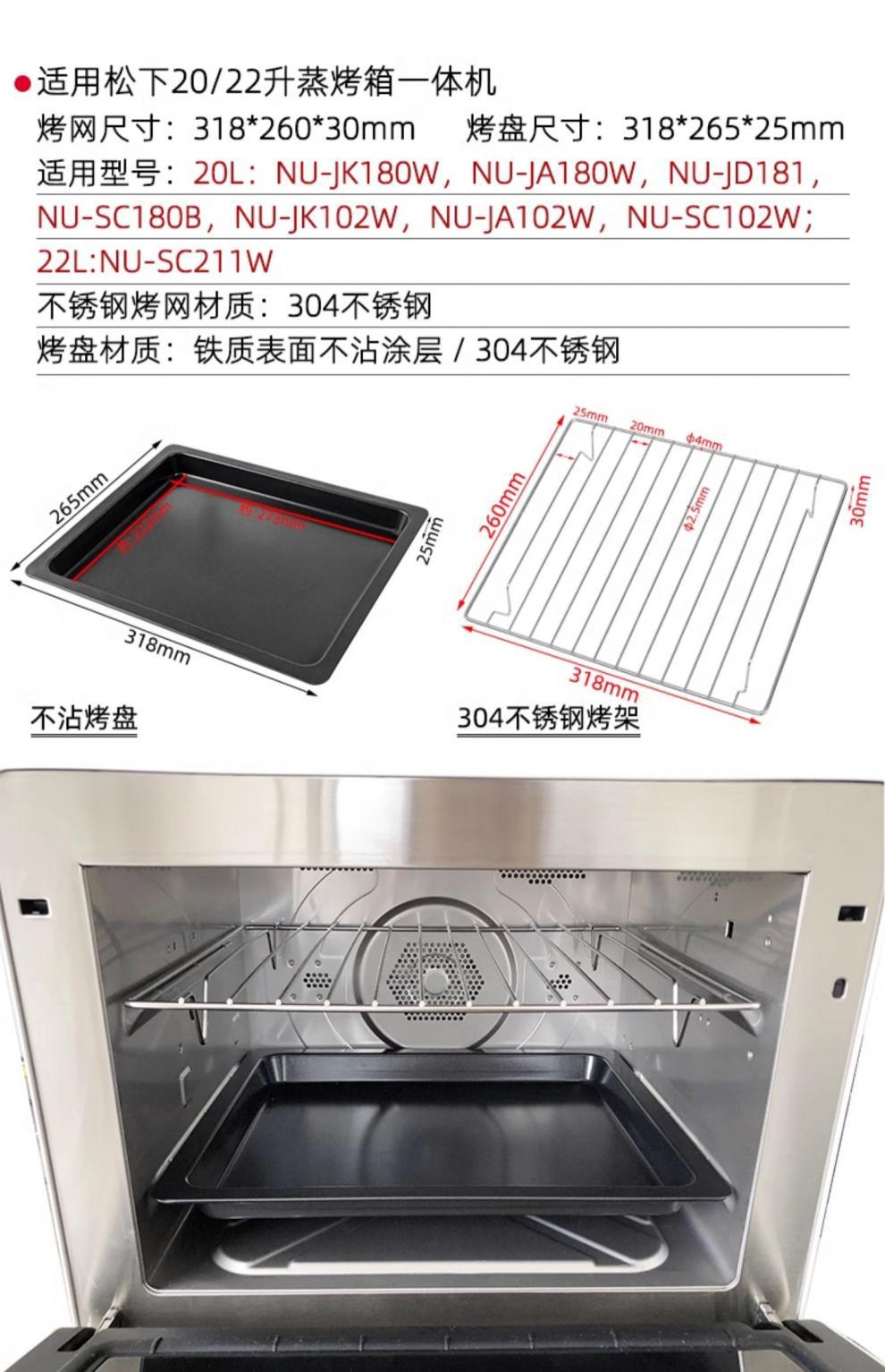 파나소닉 스팀 오븐에 적합 스테인레스 스틸 베이킹 팬 메쉬 랙 15/20/30L 38 리터 식품 트레이 JK102W/180W