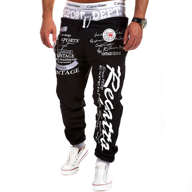 대외 무역 캐주얼 바지 남성용 드로스트링 신축성 있는 허리 문자 인쇄 루즈한 스웨트 팬츠 힙합 바지 남성용 크로스보더