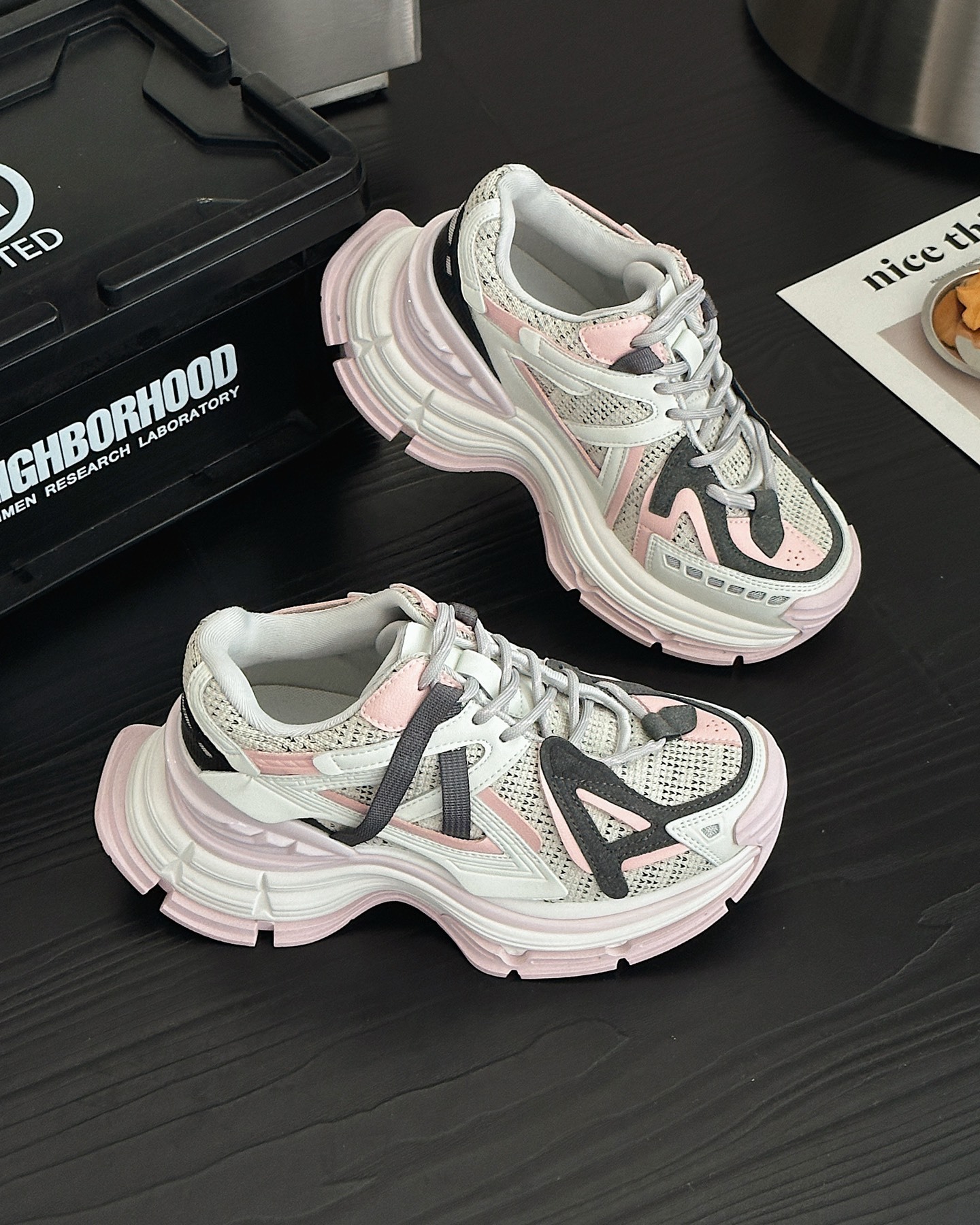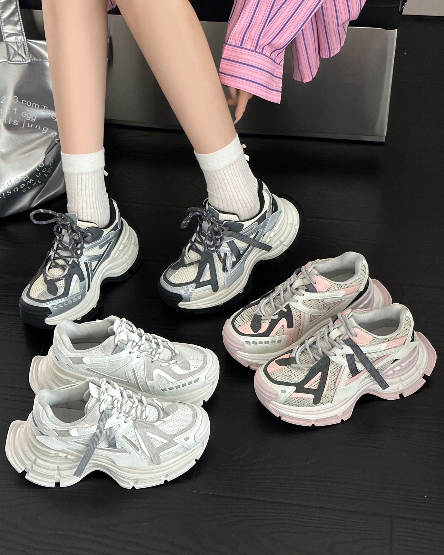 아빠 신발 유럽 여성 신발 신장 증가 새로운 캐주얼 스포츠 봄 두꺼운 밑창 운동화 2025 레이스 업 다용도
