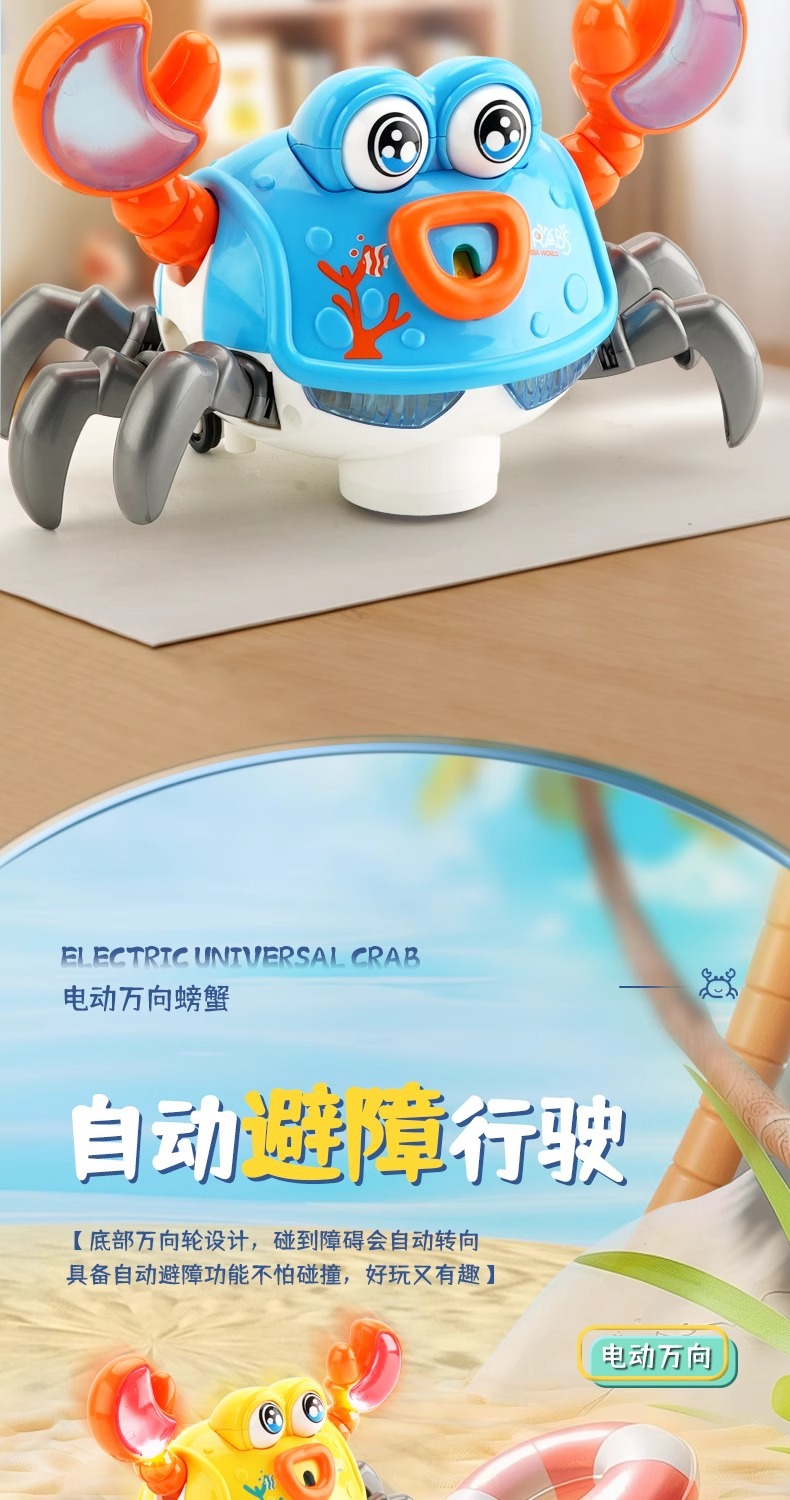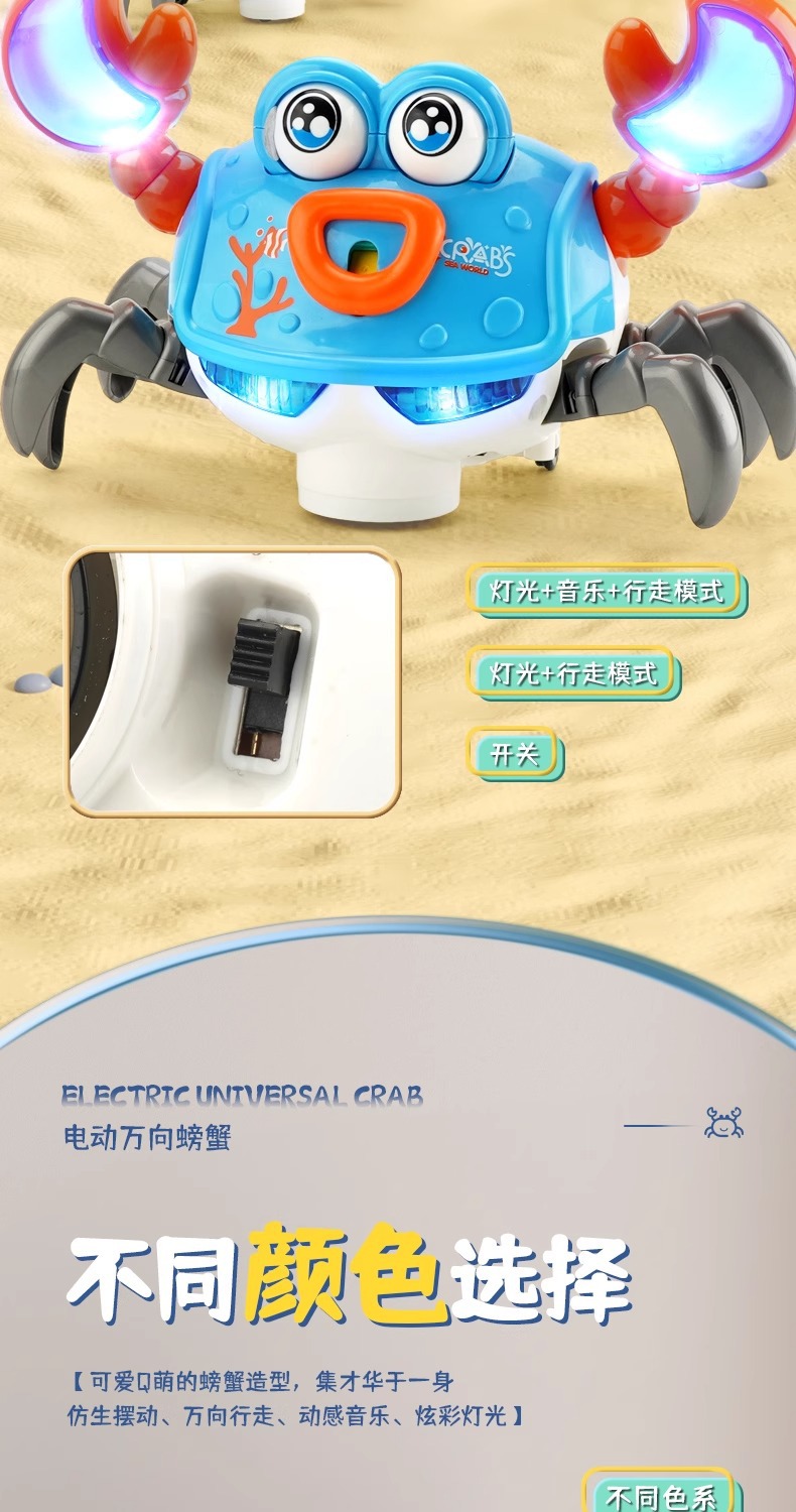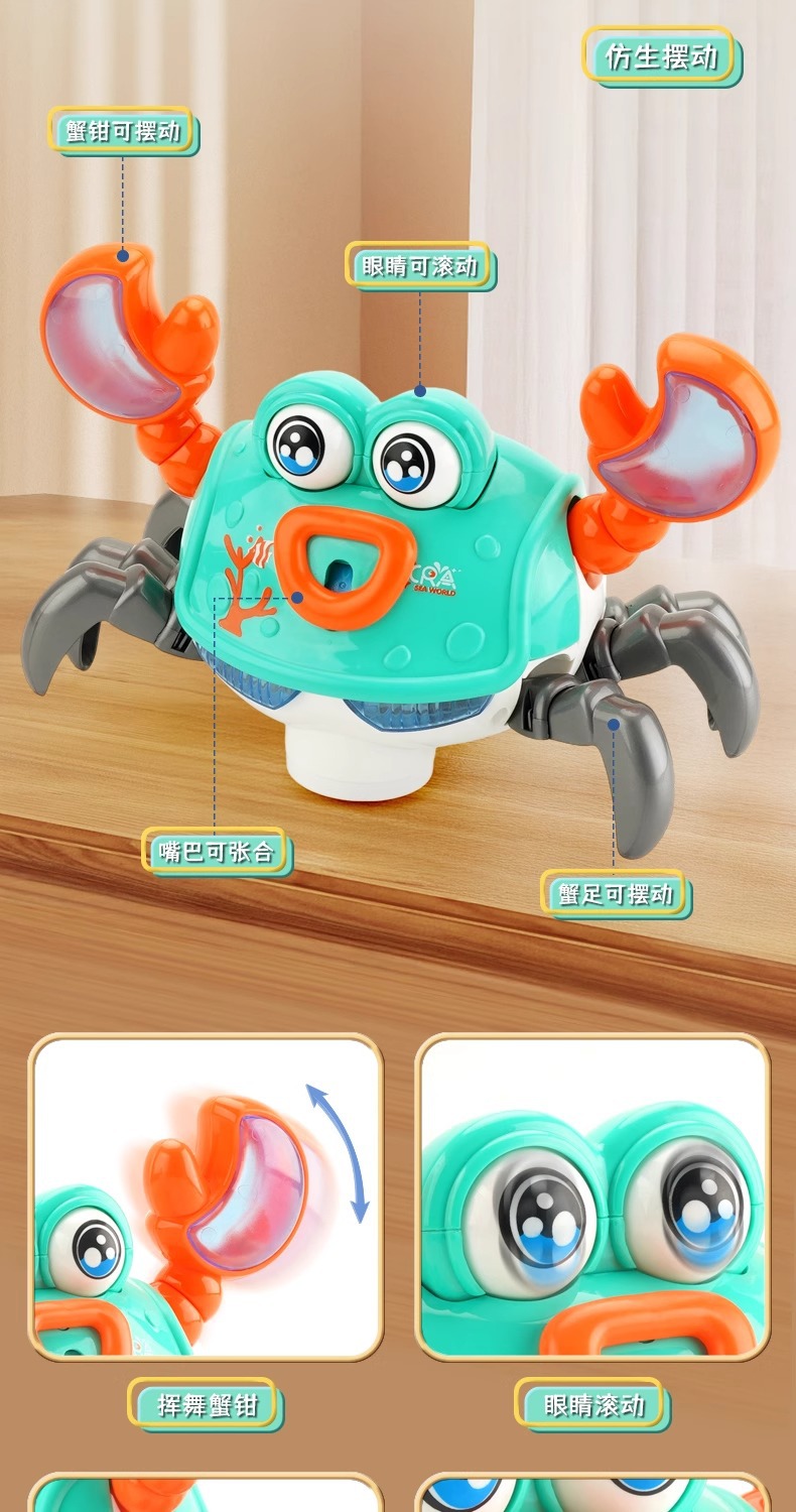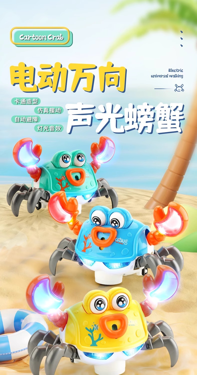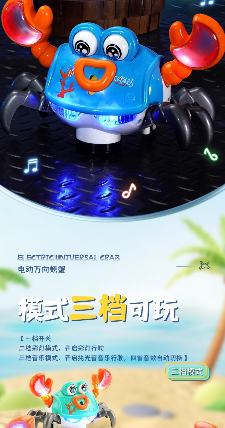 국경 간 신제품 전기 범용 깜박임 게 다채로운 음악 조명 만화 동물 시뮬레이션 크롤링 장난감 도매