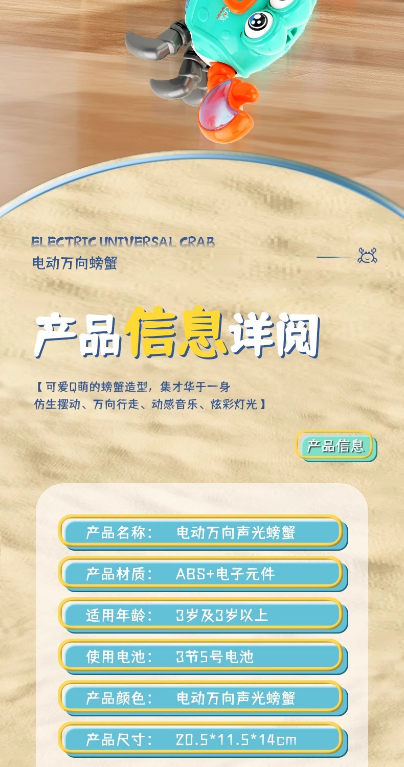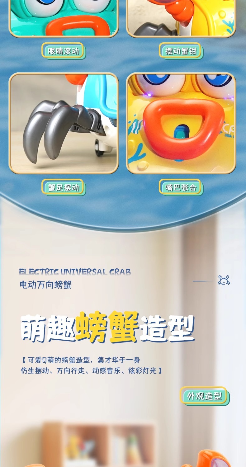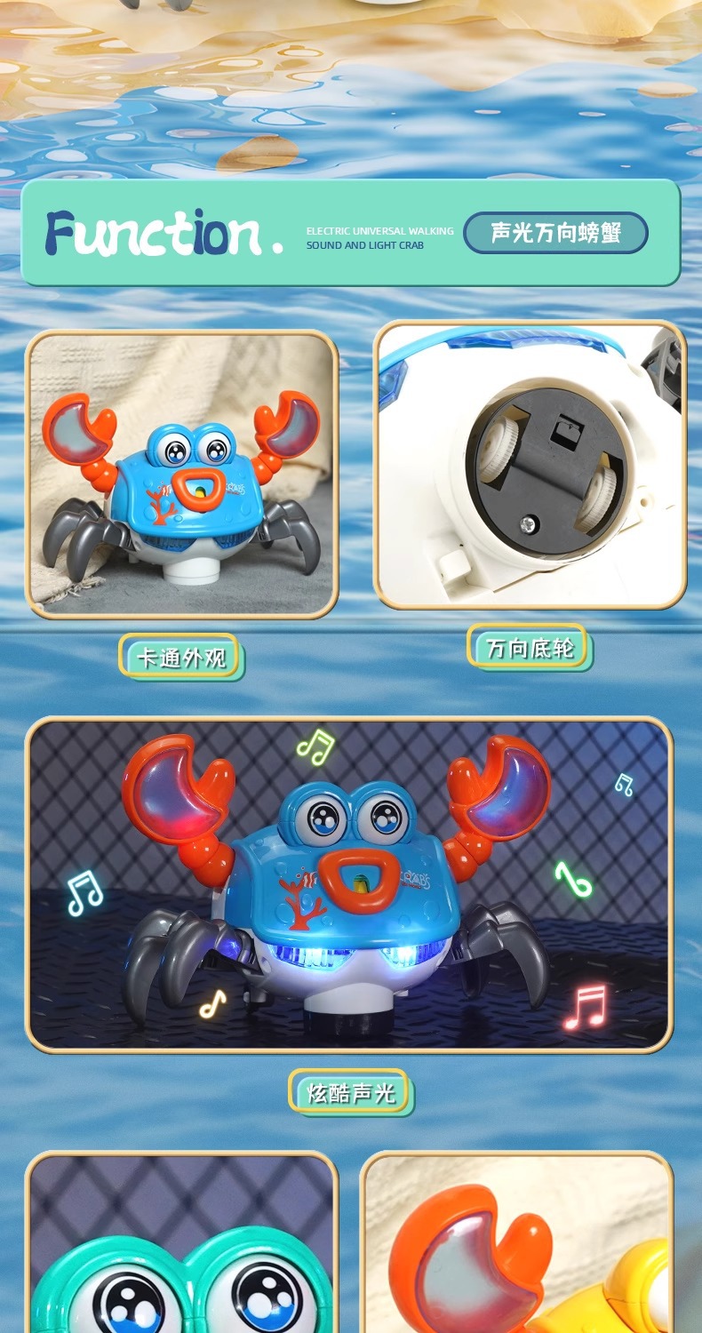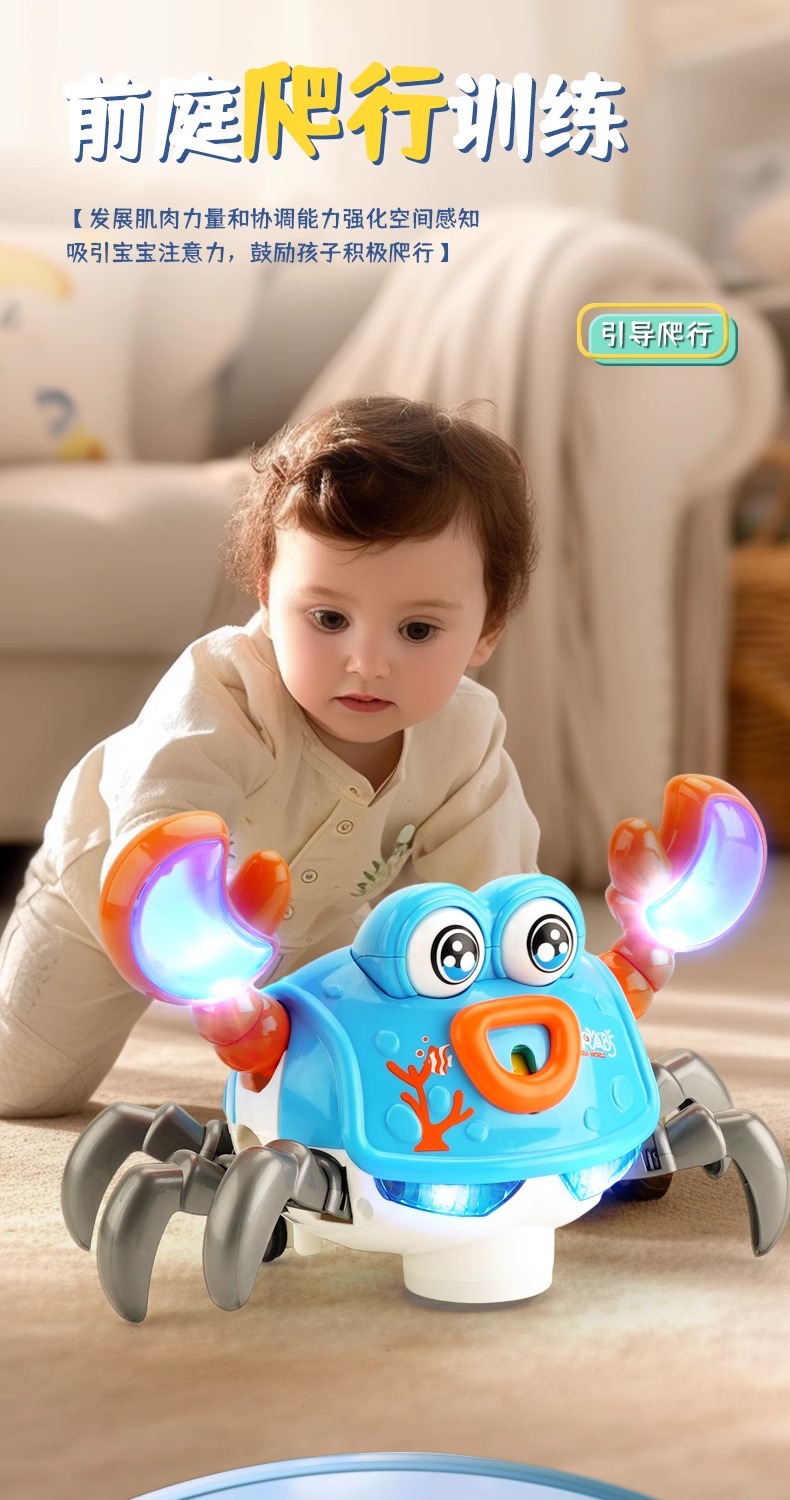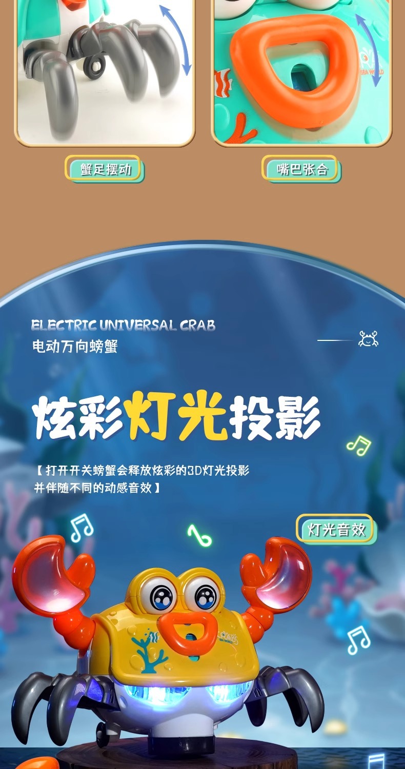국경 간 신제품 전기 범용 깜박임 게 다채로운 음악 조명 만화 동물 시뮬레이션 크롤링 장난감 도매