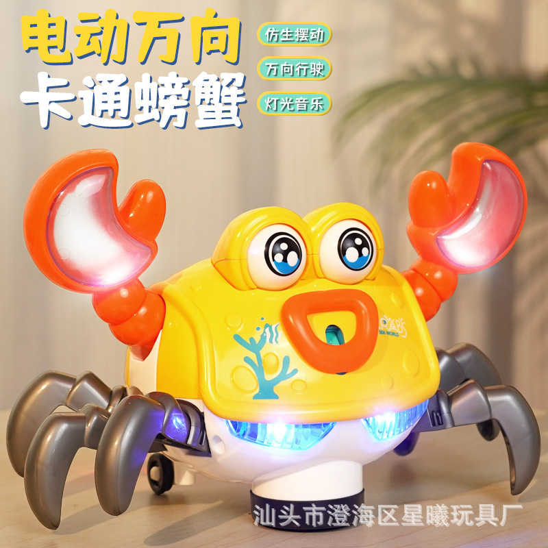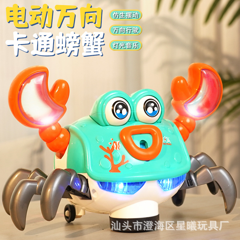 국경 간 신제품 전기 범용 깜박임 게 다채로운 음악 조명 만화 동물 시뮬레이션 크롤링 장난감 도매스토어 가기
