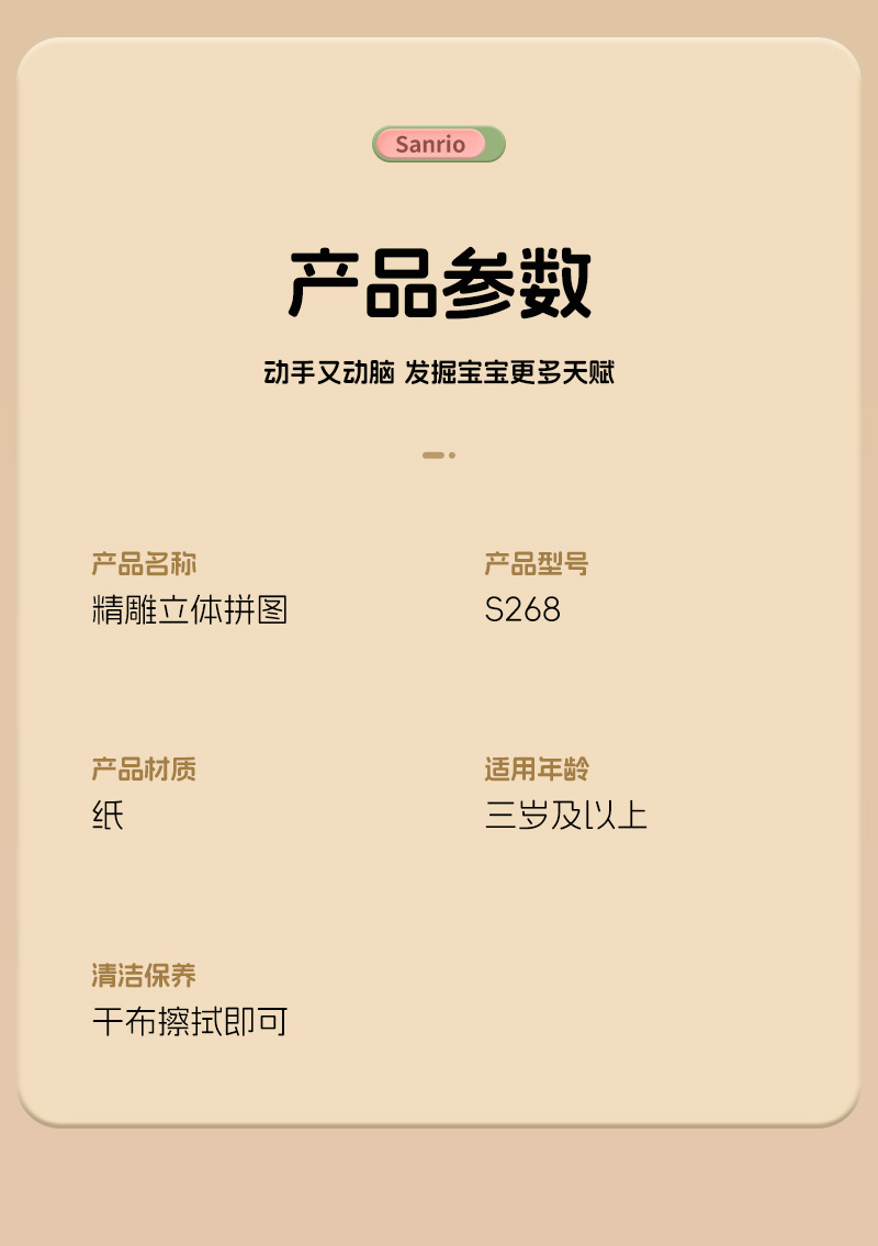 산리오 스테레오 퍼즐 어린이 수제 DIY 컬러 3D 종이 퍼즐 어린이 퍼즐 조각 선물 장식품스토어 가기