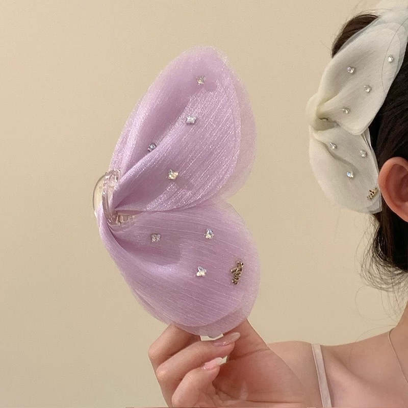 프랑스 스타일 슈퍼 페어리 툴레 나비 플래시 잡아 클립 여성용 헤어 액세서리 우아한 헤어 클립 상어 클립 헤드폰 대형 헤어 액세서리