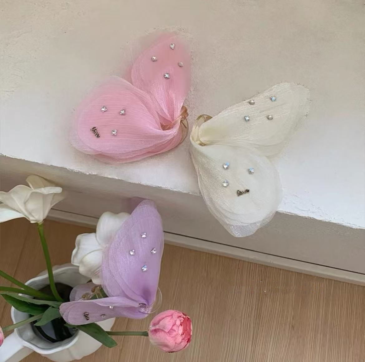 프랑스 스타일 슈퍼 페어리 툴레 나비 플래시 잡아 클립 여성용 헤어 액세서리 우아한 헤어 클립 상어 클립 헤드폰 대형 헤어 액세서리스토어 가기