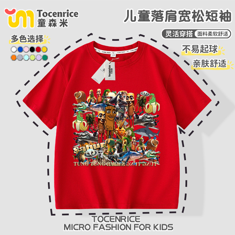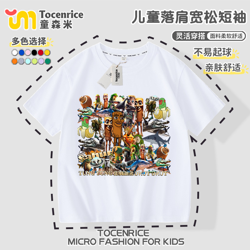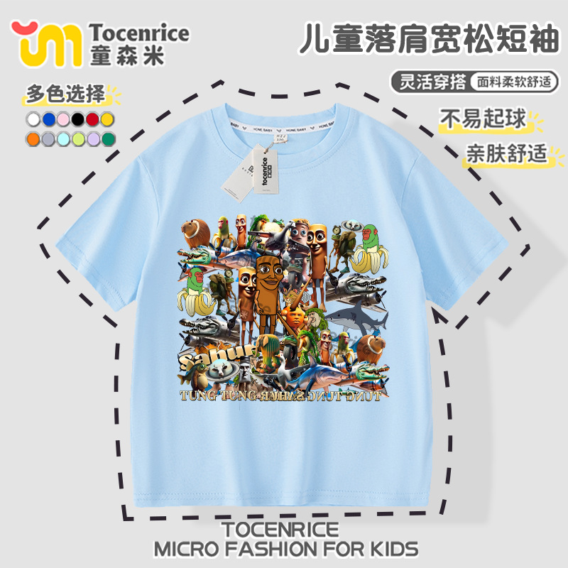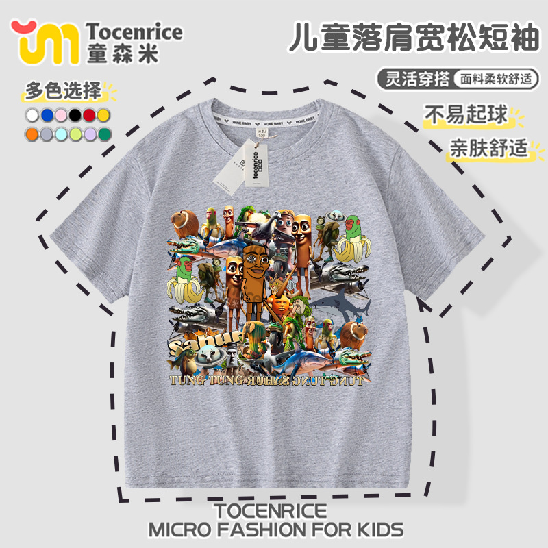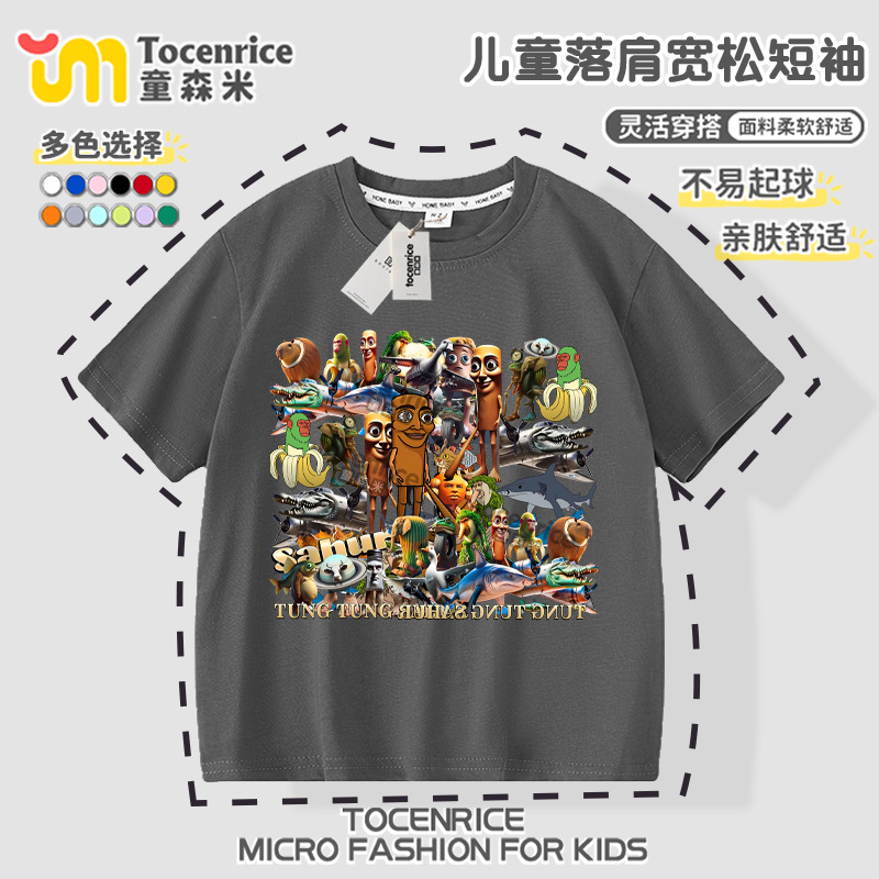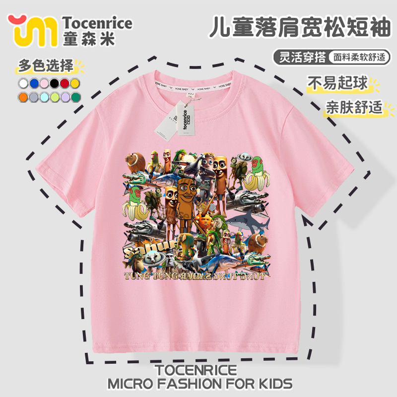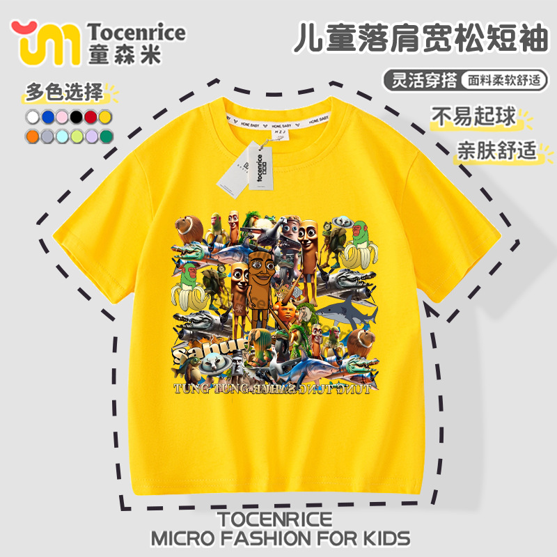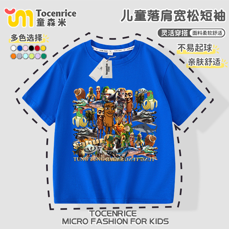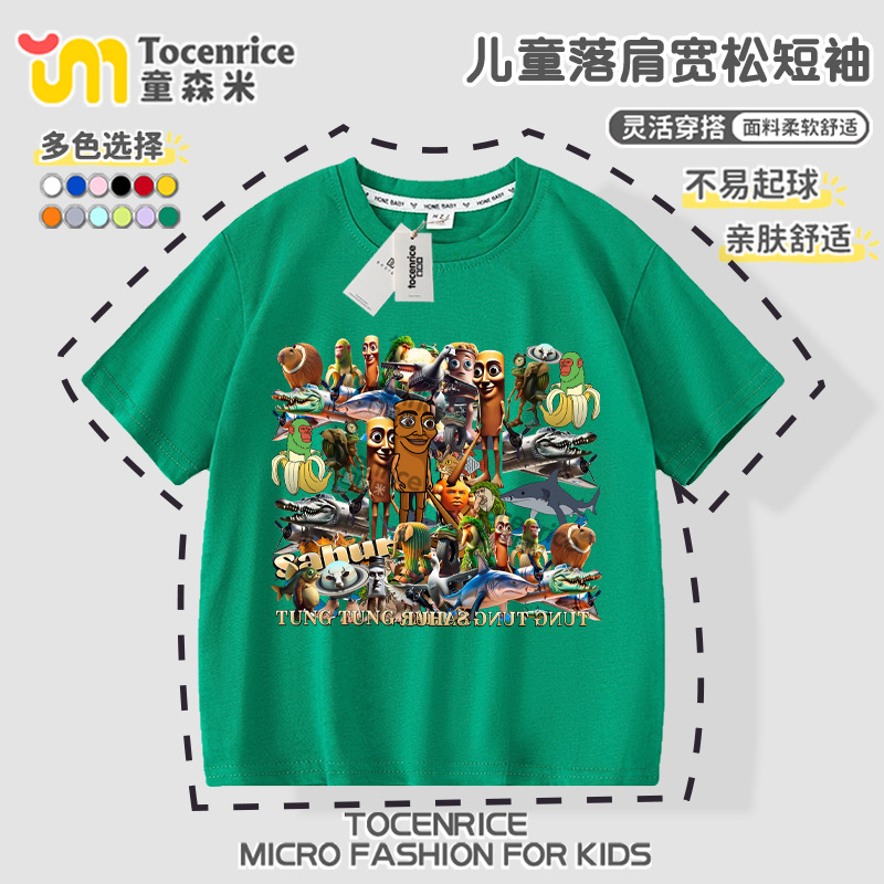 나무 막대 사람 옷 추상 외국 산과 바다 어린이 반팔 티셔츠 tongtongsahur 만화 유행 아동 의류스토어 가기
