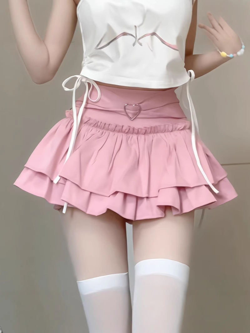 [오리지널 레시피] 귀여운 푹신한 하트 복숭아 하이웨이스트 케이크 스커트, 미니스커트, 노출방지 스커트