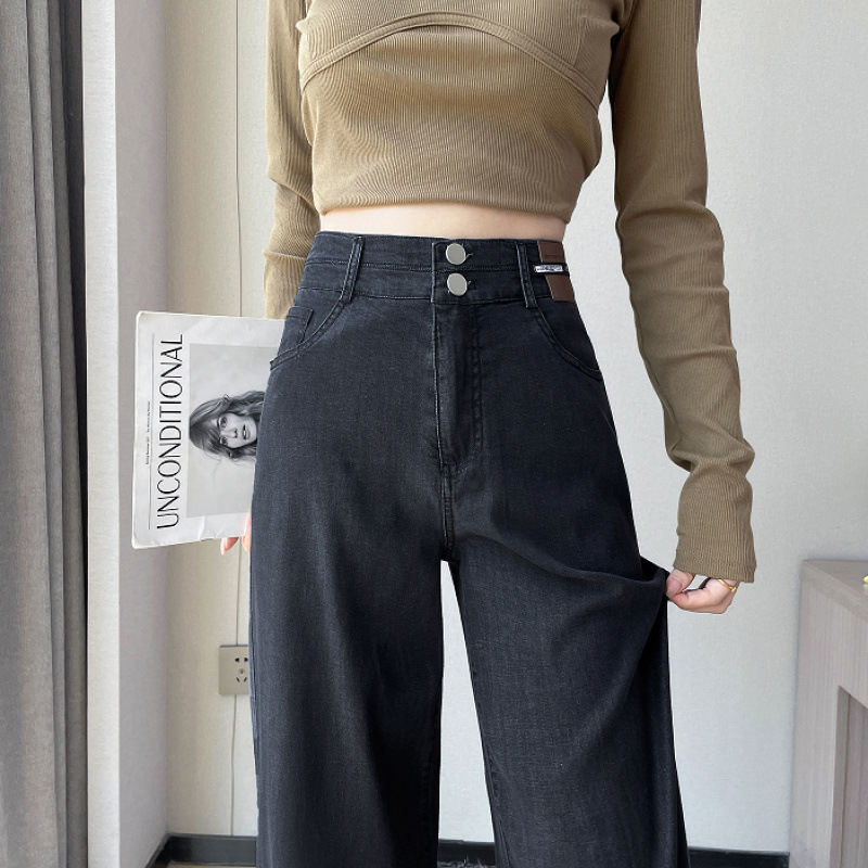 봄과 여름 2025 새로운 텐셀 청바지 여성의 작은 높은 허리 스트레이트 튜브 좁은 넓은 다리 바지 3781