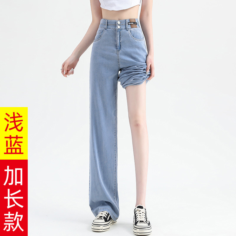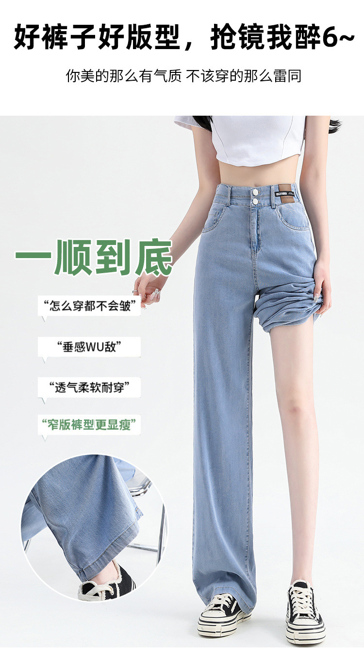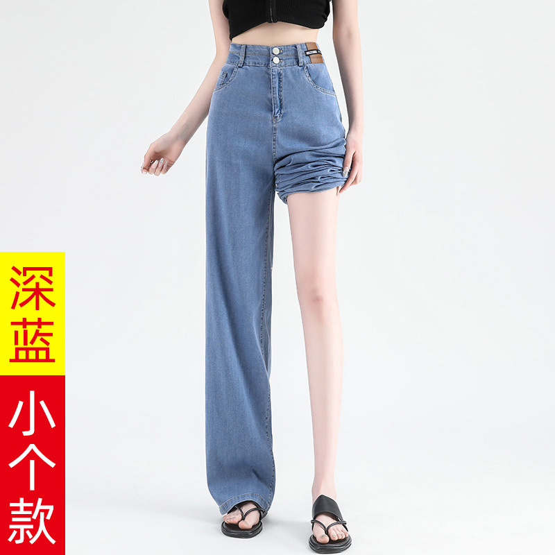 봄과 여름 2025 새로운 텐셀 청바지 여성의 작은 높은 허리 스트레이트 튜브 좁은 넓은 다리 바지 3781스토어 가기