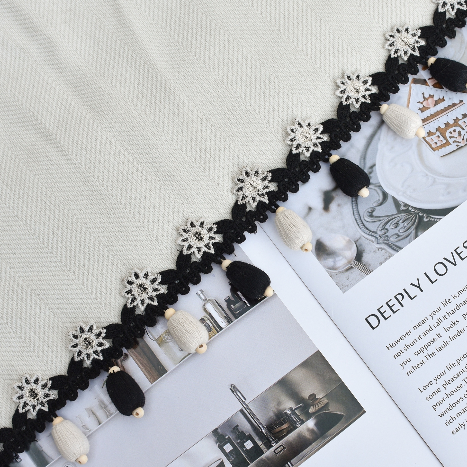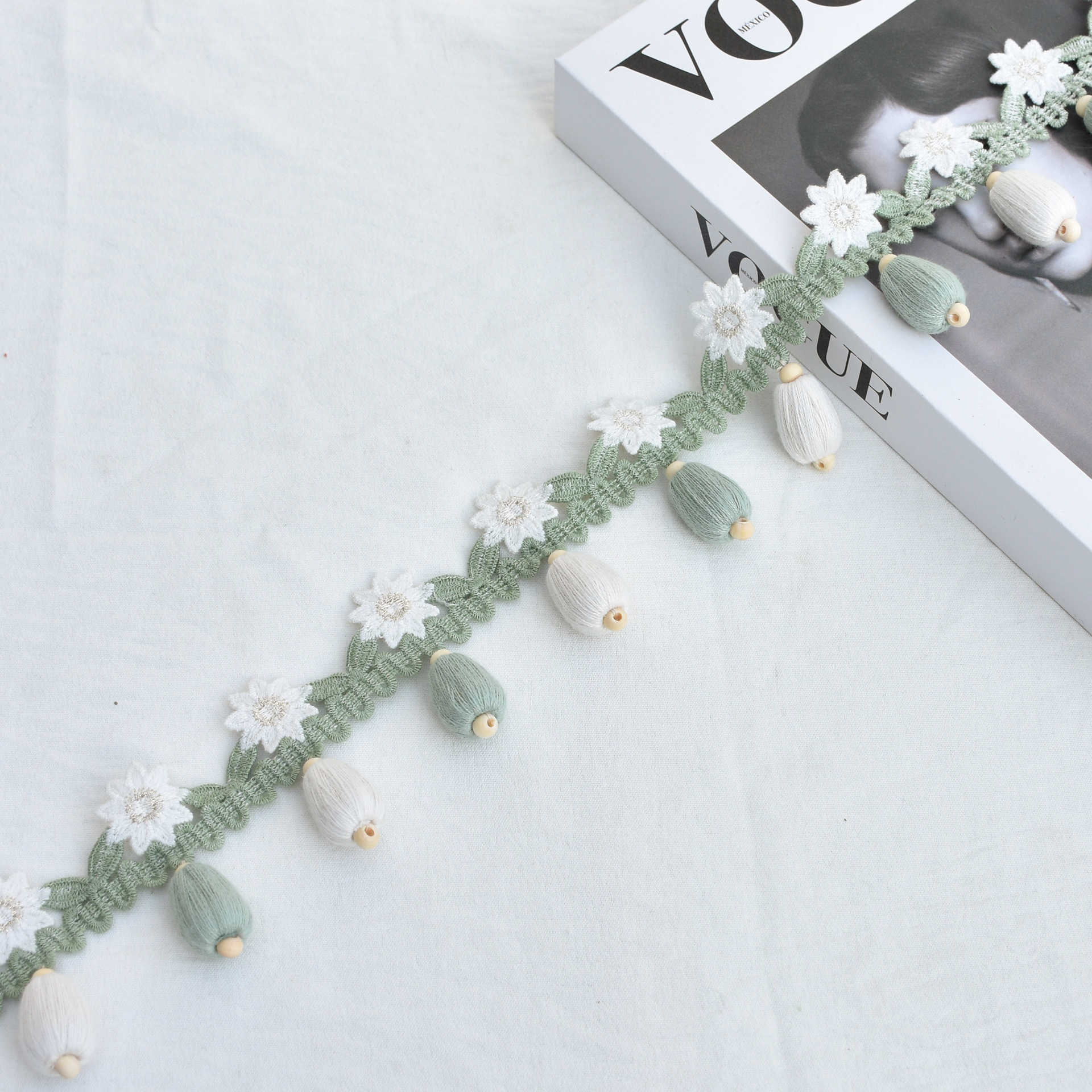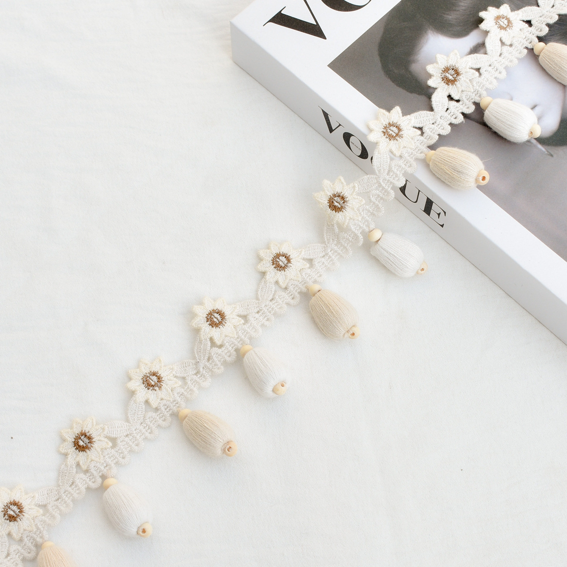 동수 커튼 레이스 컬러 매칭 우드 비즈 꽃 바느질 의류 베개 식탁보 천 액세서리 사이드 향기로운 스타일