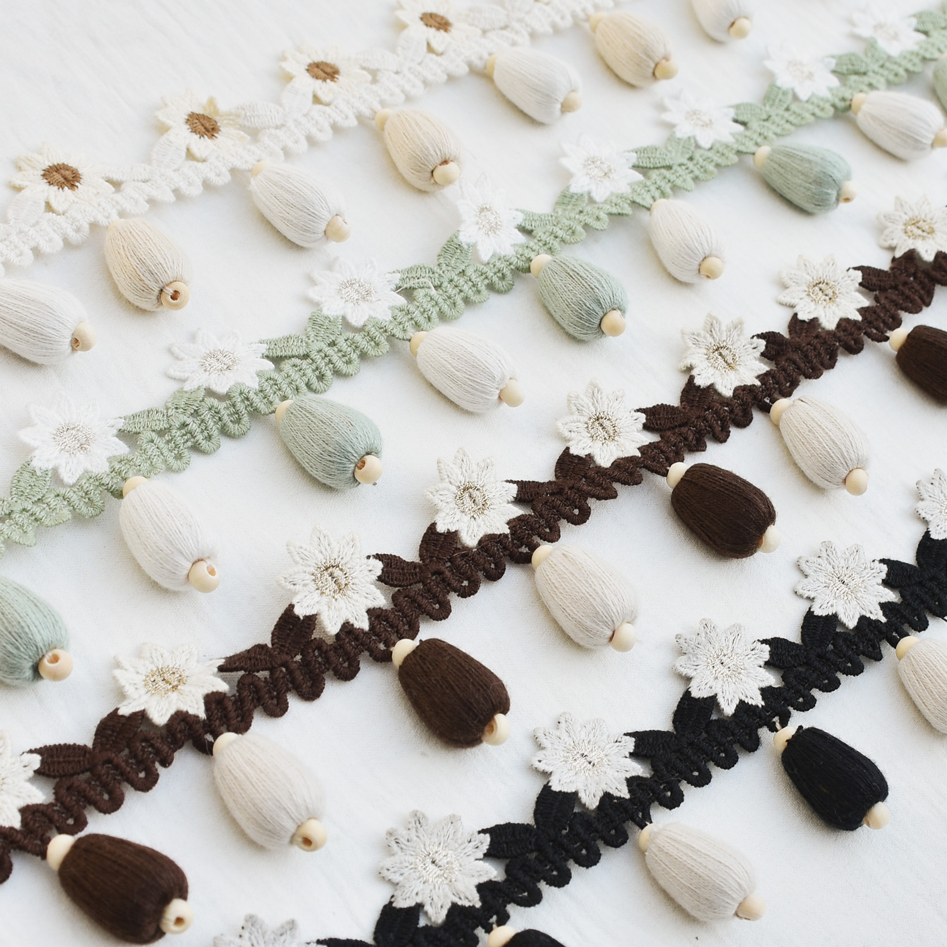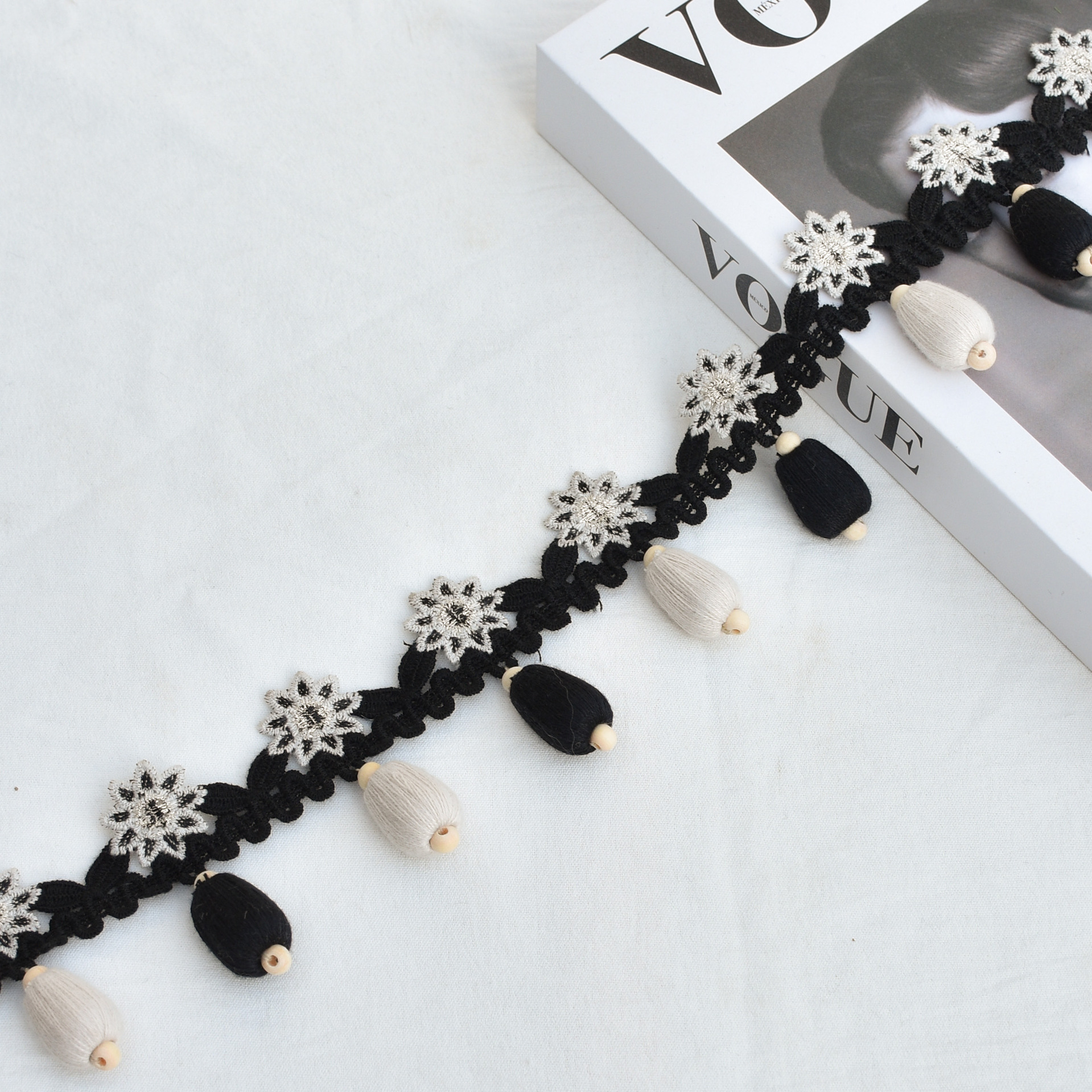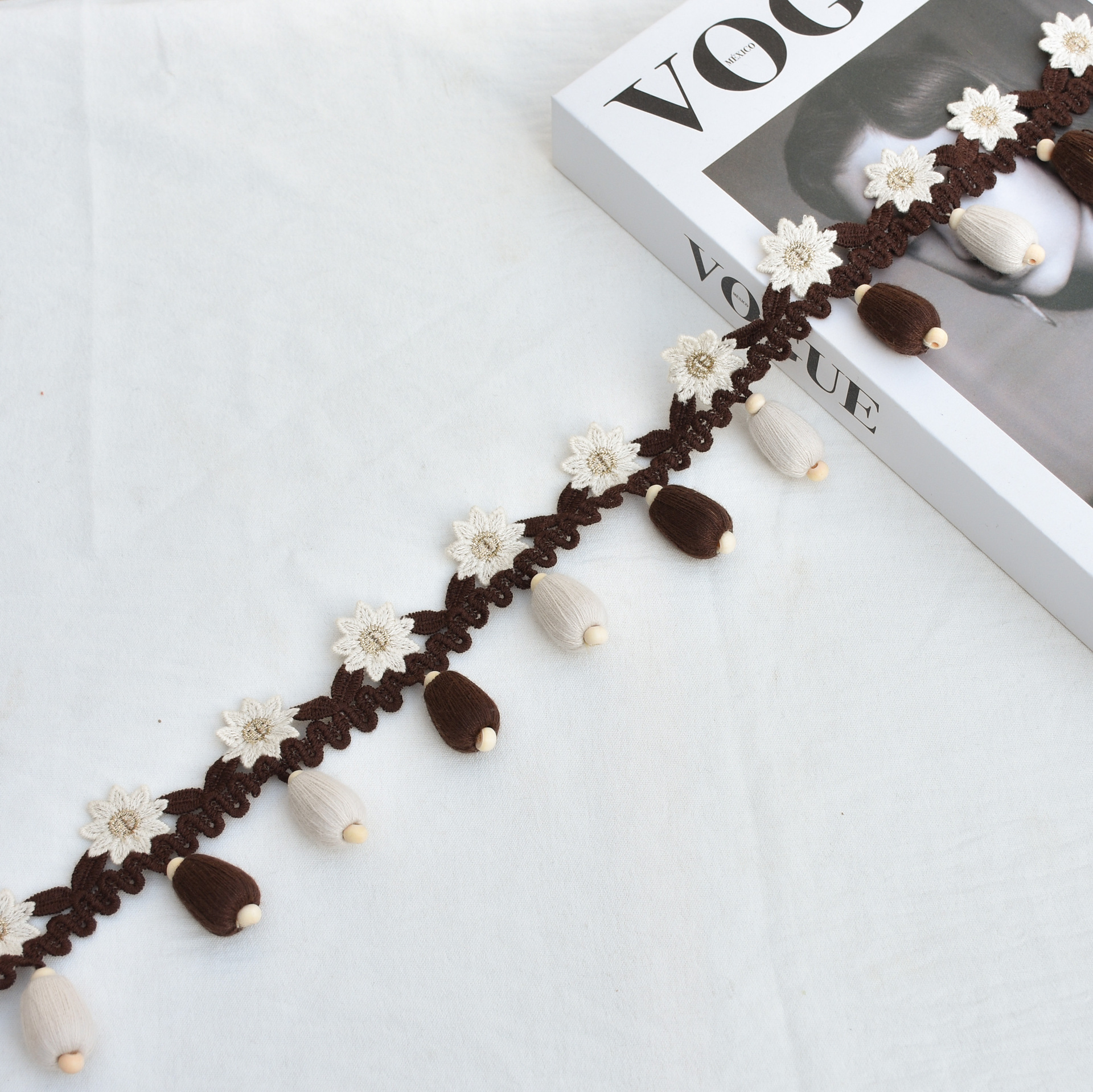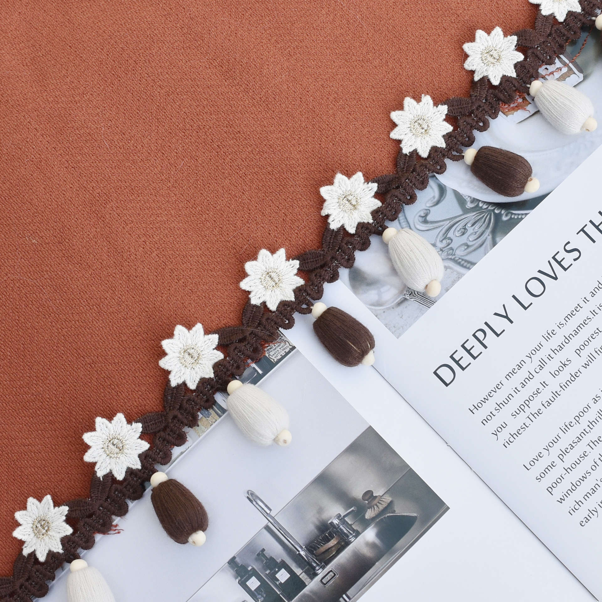 동수 커튼 레이스 컬러 매칭 우드 비즈 꽃 바느질 의류 베개 식탁보 천 액세서리 사이드 향기로운 스타일