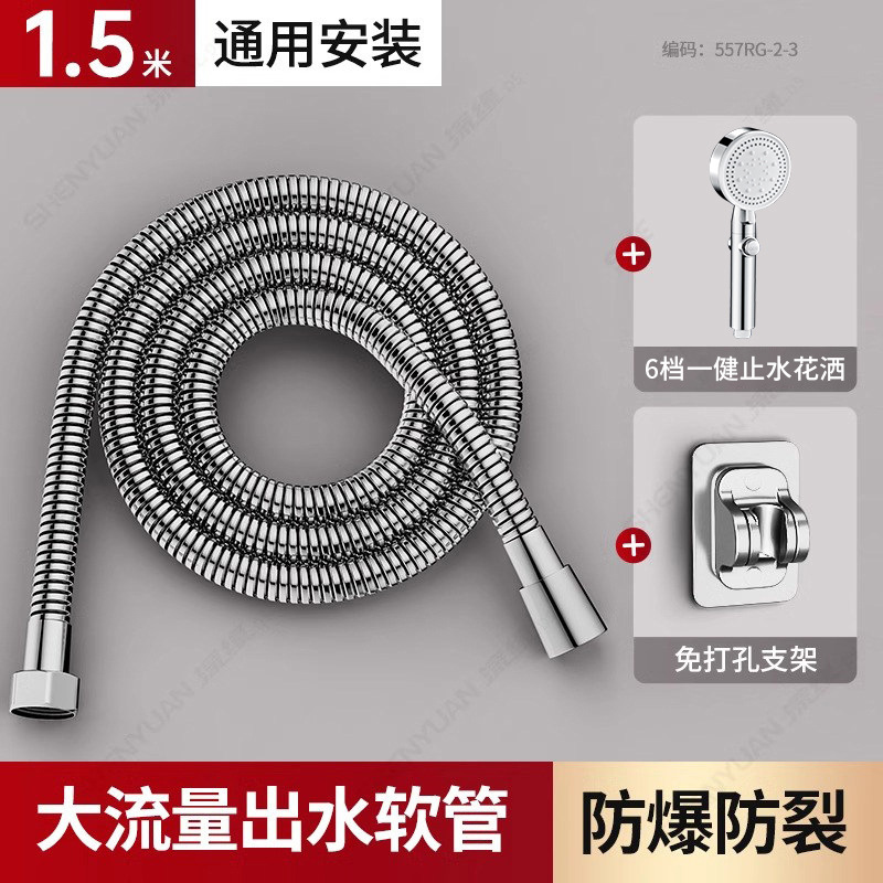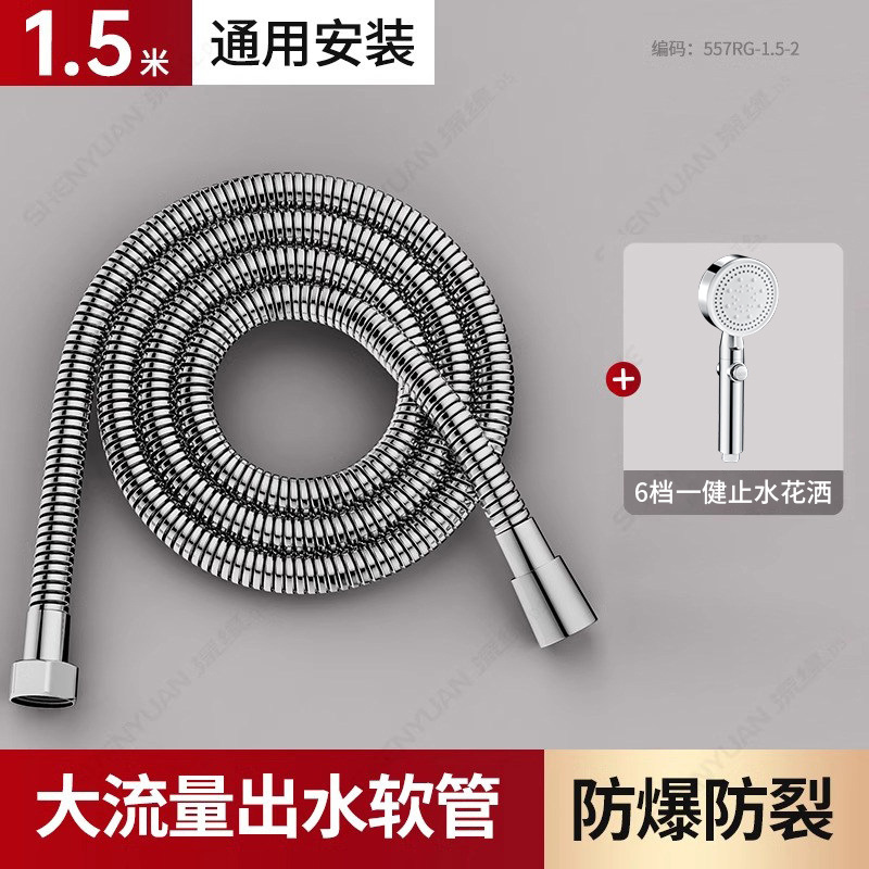 • [실버세트2] 1.5m 황동 대구경 호스 + 원터치 지수 6단 슈퍼차저 샤워기