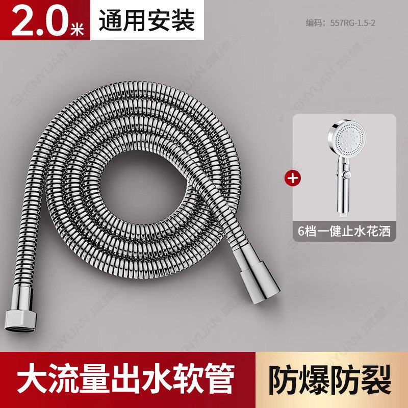 • 실버세트5] 2.0m 황동 대구경 호스 + 원터치 정지 6단 수압 조절 샤워기