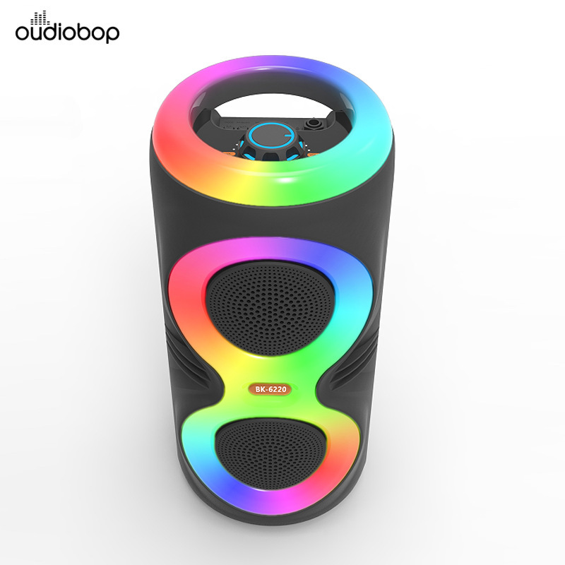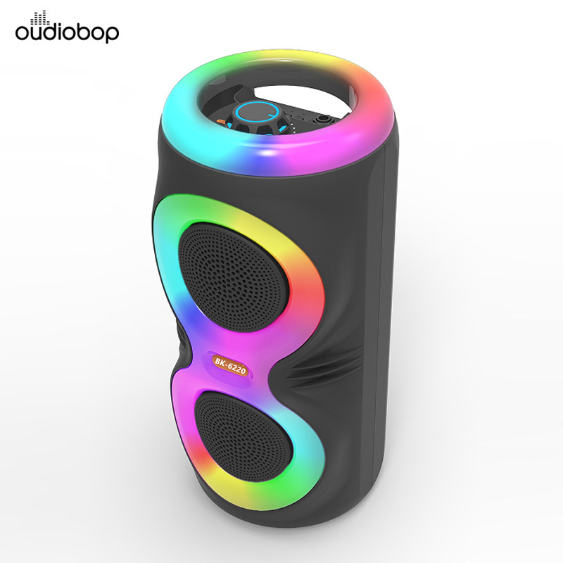 새로운 4inch 스퀘어 댄스 블루투스 오디오 야외 모바일 휴대용 듀얼 스피커 LED 다채로운 조명 다기능 노브 조정