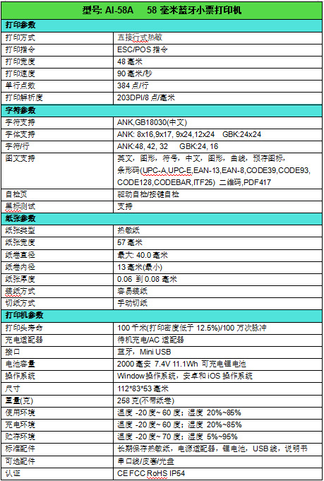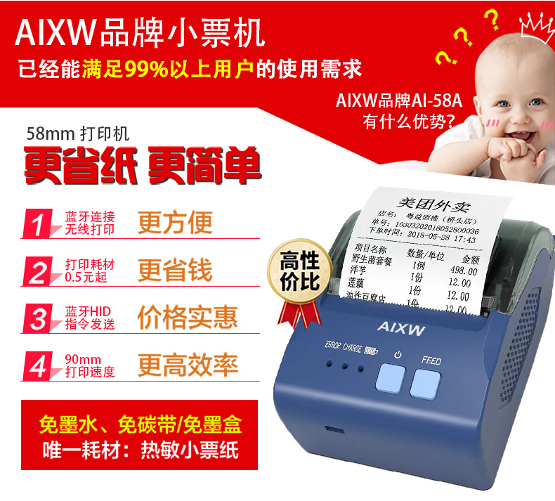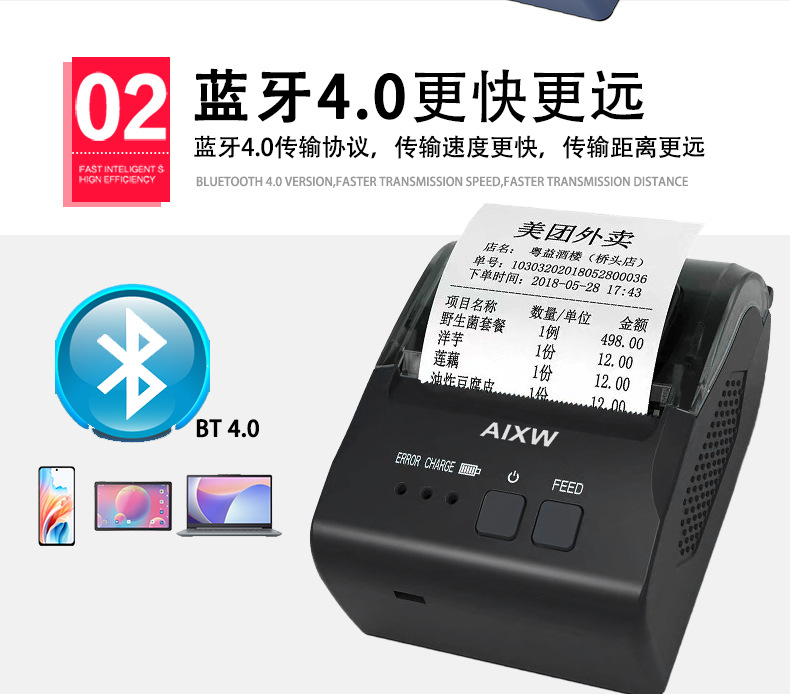 AI-58A无墨便携58mm小票热敏打印机蓝牙手机连接外卖票据打印