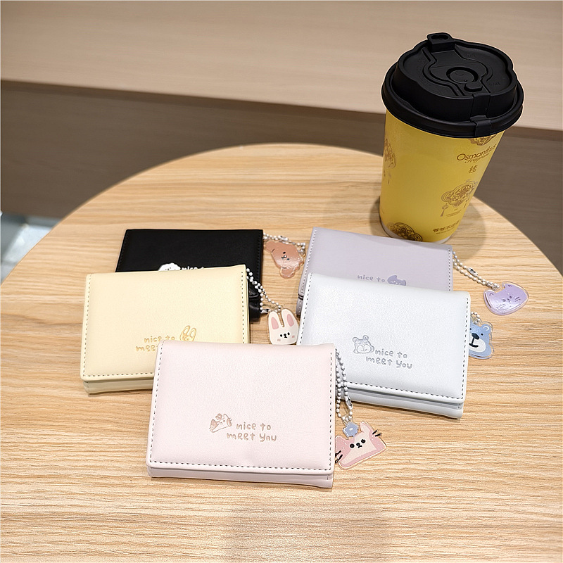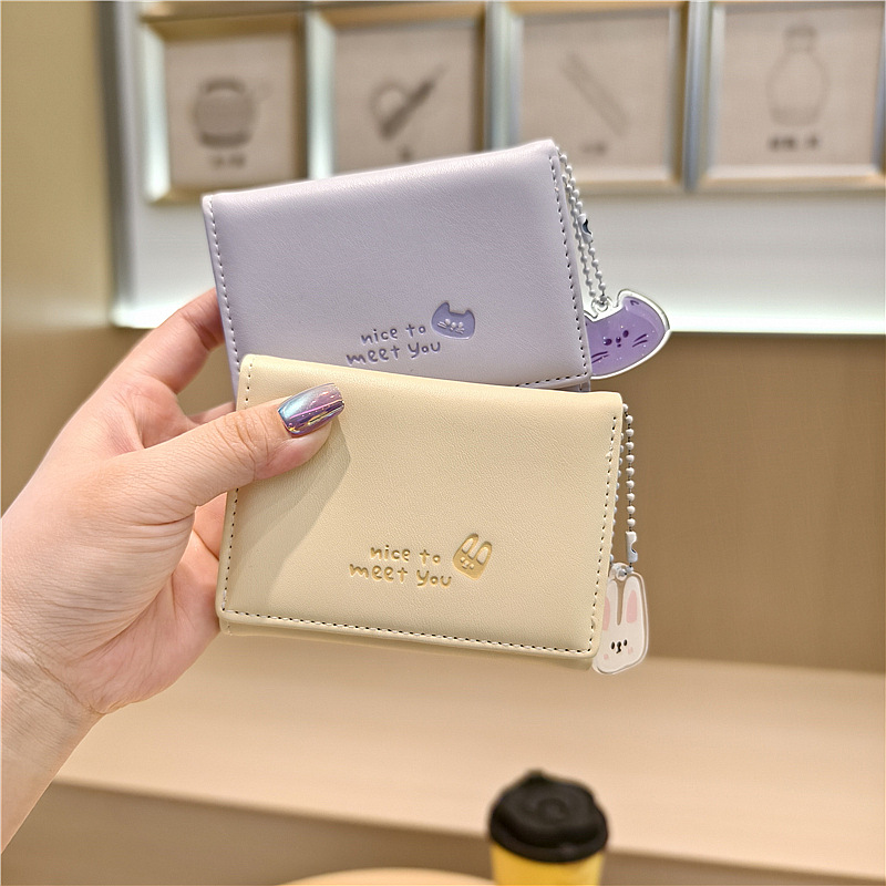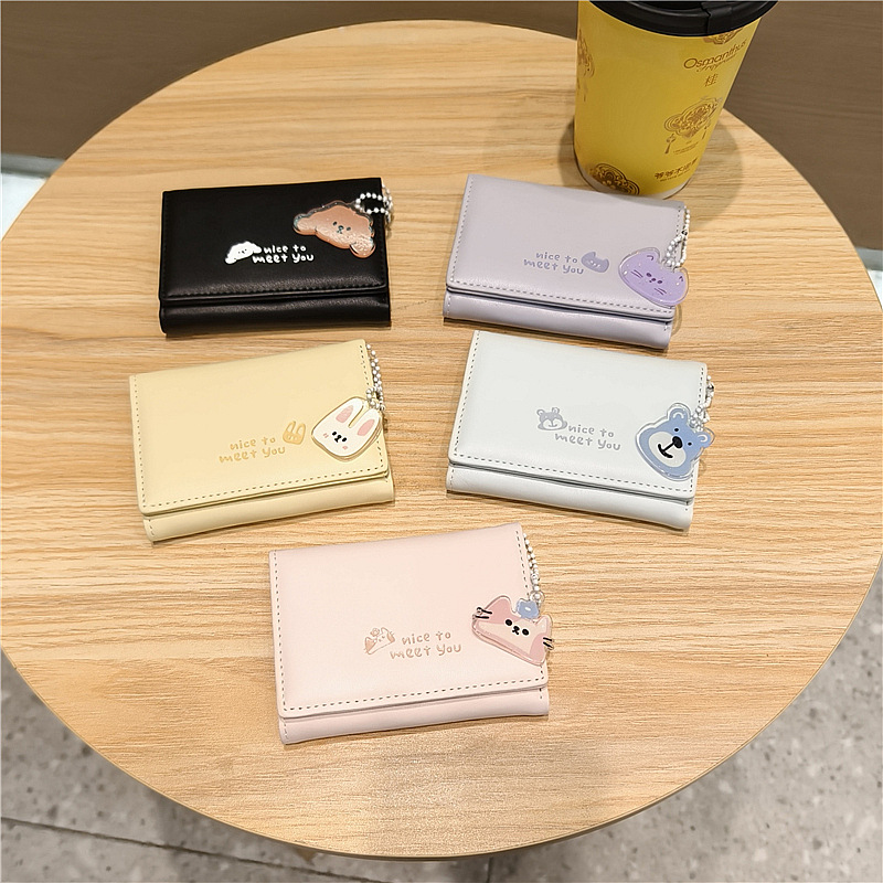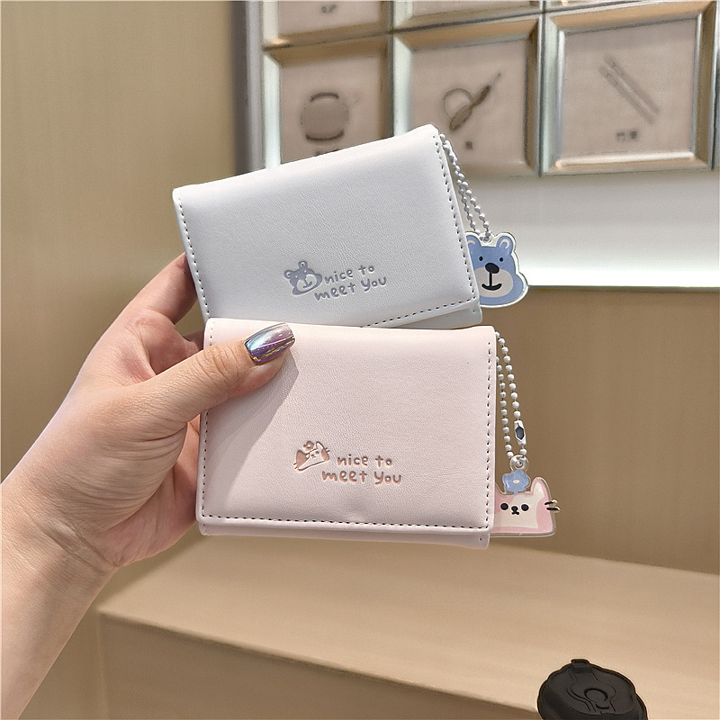 Daini 새로운 일본과 한국 귀여운 귀여운 만화 펜던트 작은 30% 접힌 학생 틈새 디자인 짧은 지갑스토어 가기