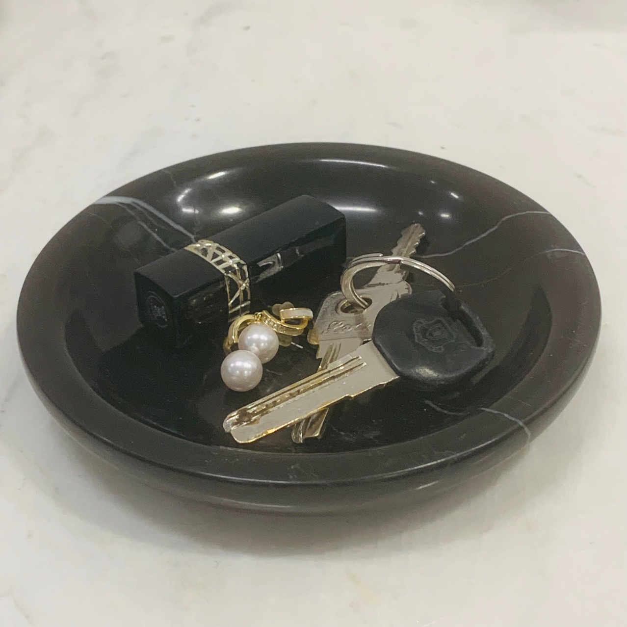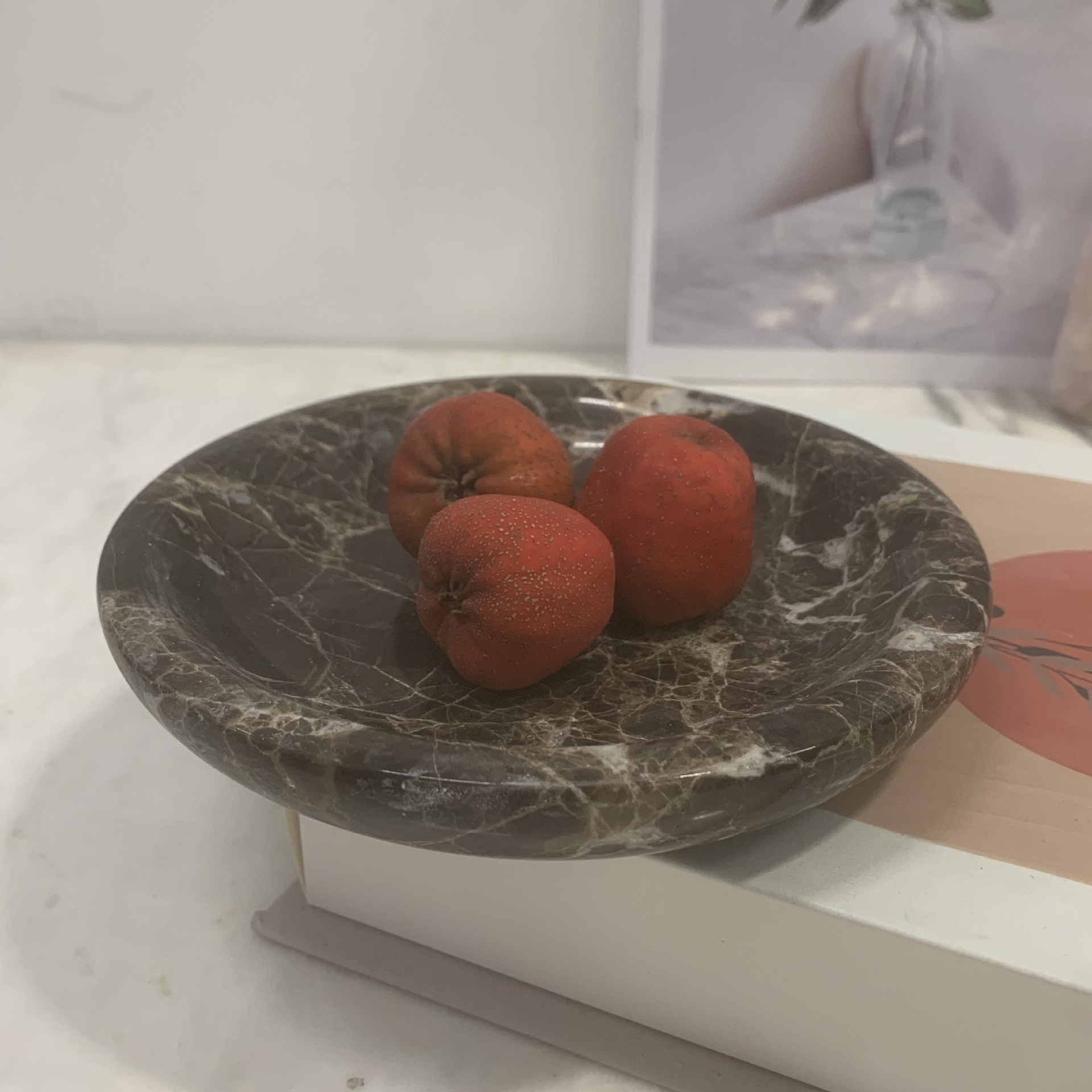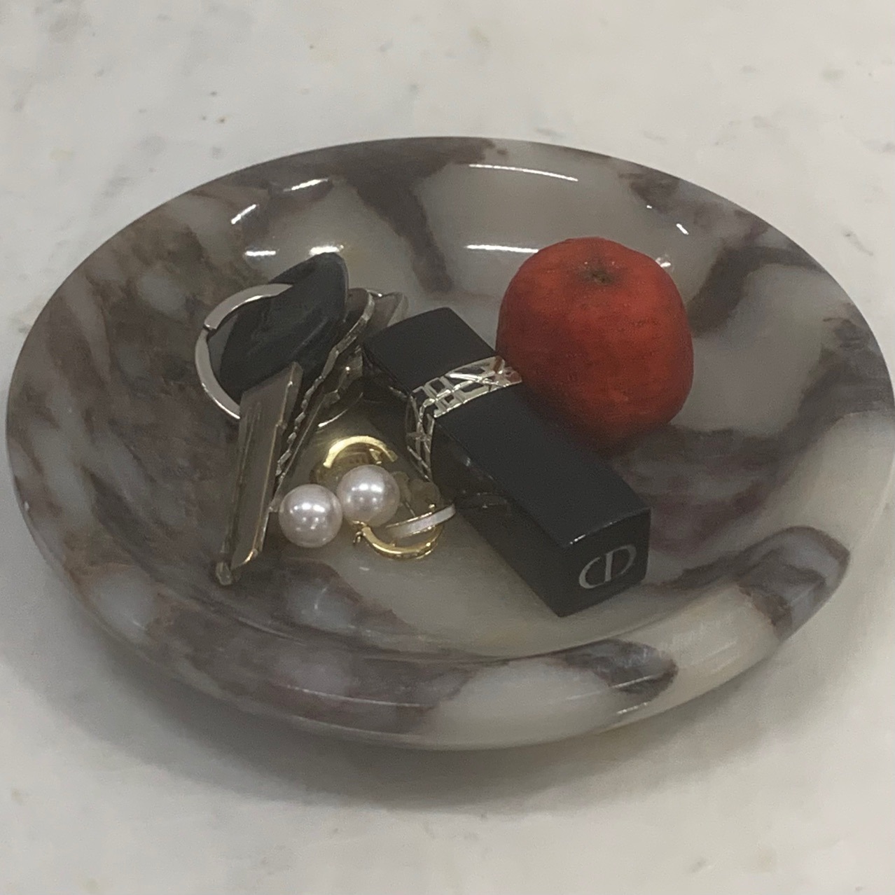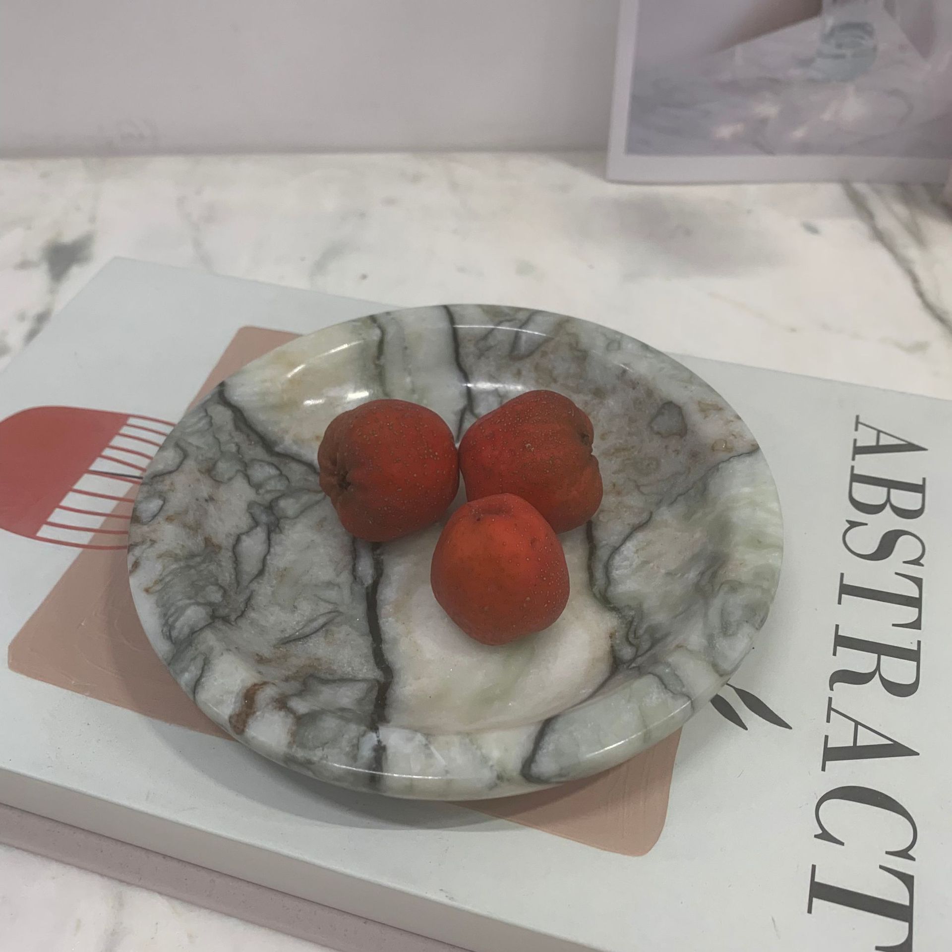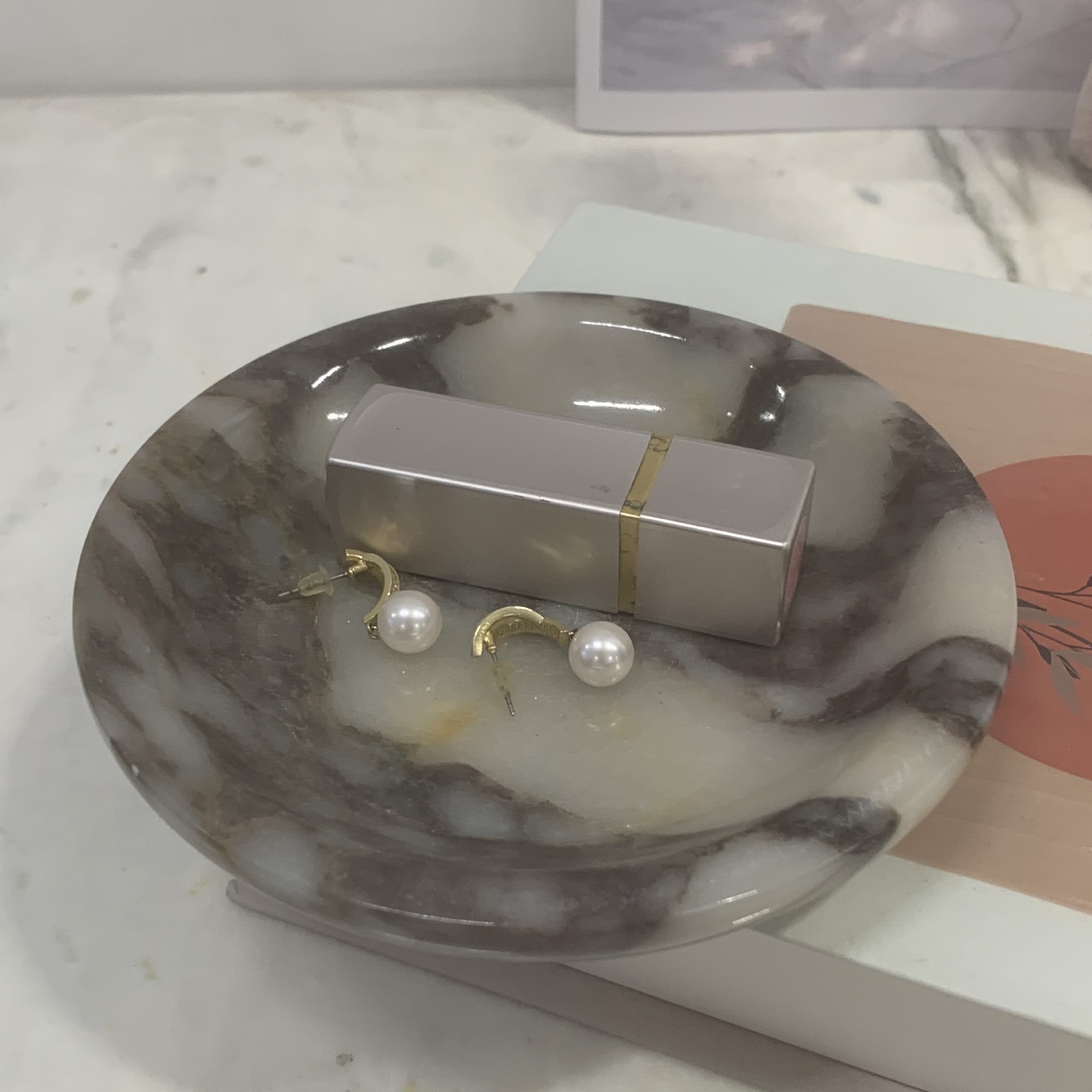 B&B 호텔 홈 욕실 보석 보관함을위한 간단한 와비 사비 스타일 천연 석회화 대리석 트레이 장식품