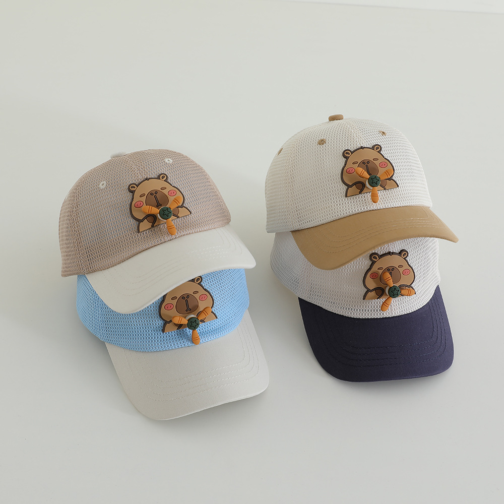 소년과 소녀를위한 여름 만화 어린이 메쉬 모자, 귀여운 양산 피크 캡, 메쉬 통기성 자외선 차단제 야구 모자