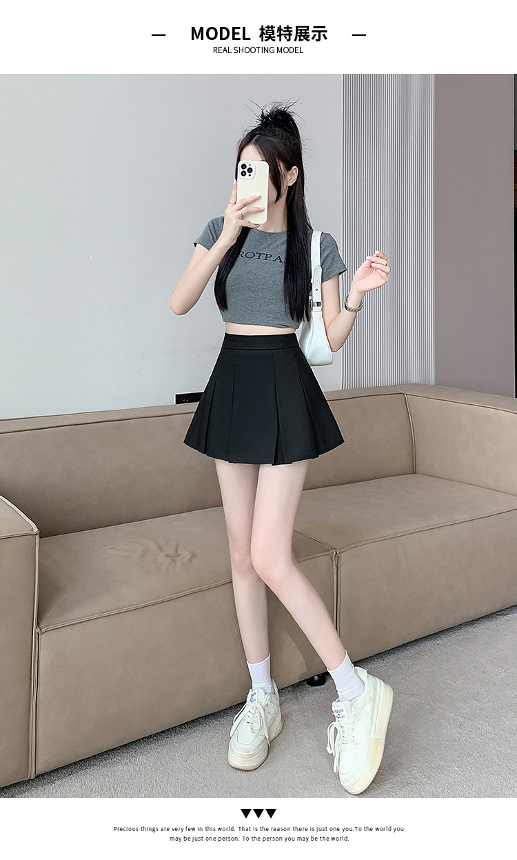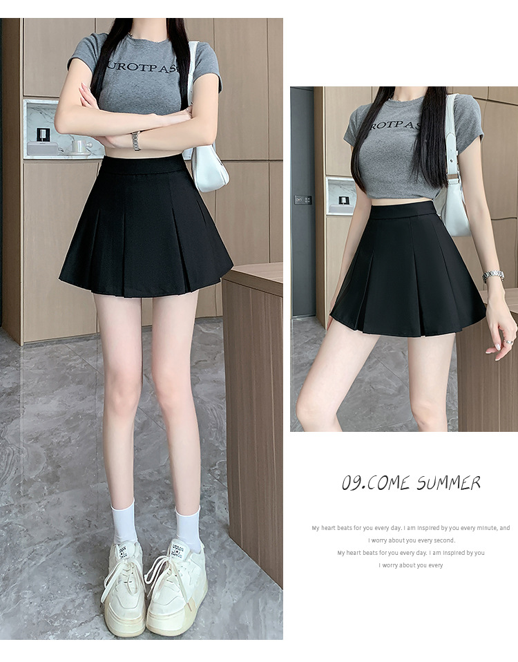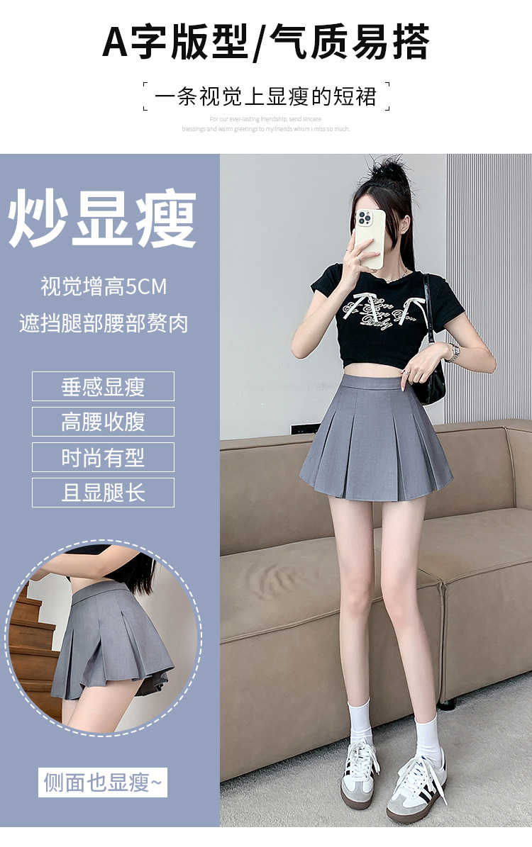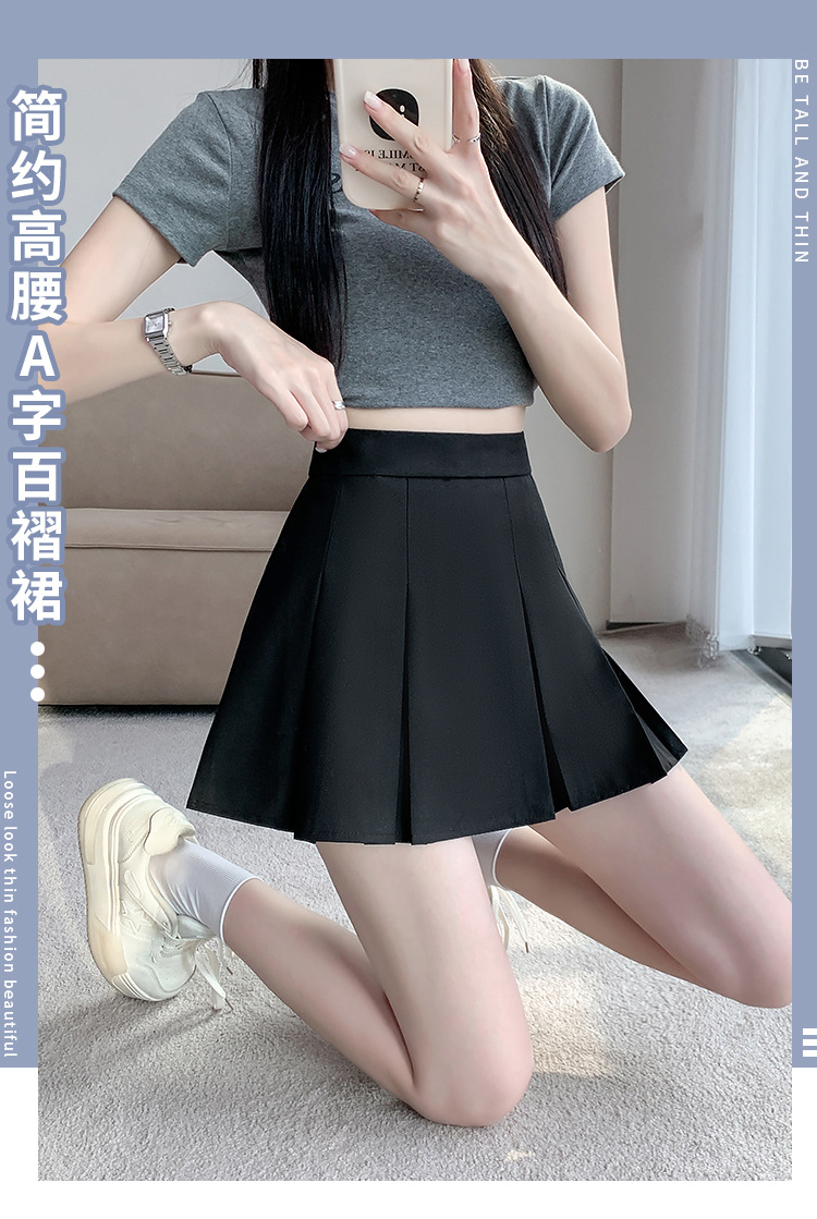 검은 주름 치마 여자 여름 2025 새로운 스타일 스파이스 소녀 짧은 치마 작은 높은 허리 A 라인 세트 치마스토어 가기