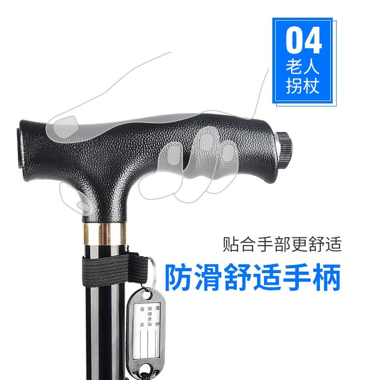 알루미늄 합금 접이식 노인 목발, 미끄럼 방지 4족 목발, 안정적이고 낙하 방지, 노인을 위한 등산 및 하이킹 지팡이스토어 가기