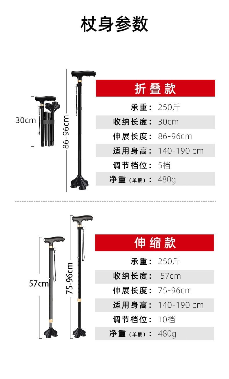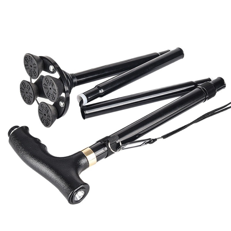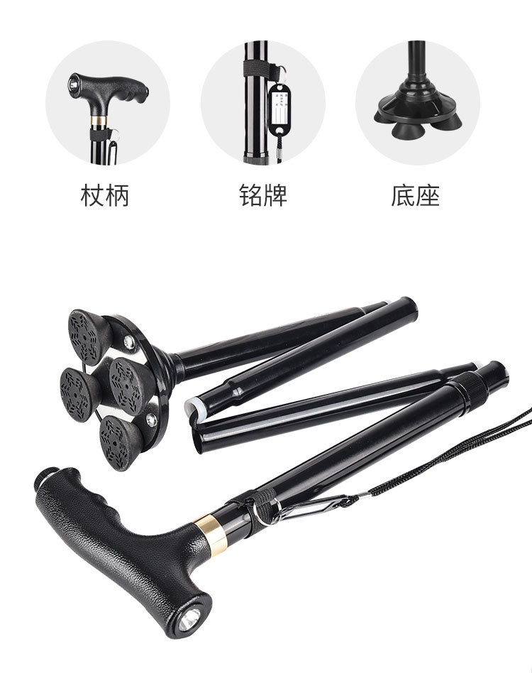 알루미늄 합금 접이식 노인 목발, 미끄럼 방지 4족 목발, 안정적이고 낙하 방지, 노인을 위한 등산 및 하이킹 지팡이