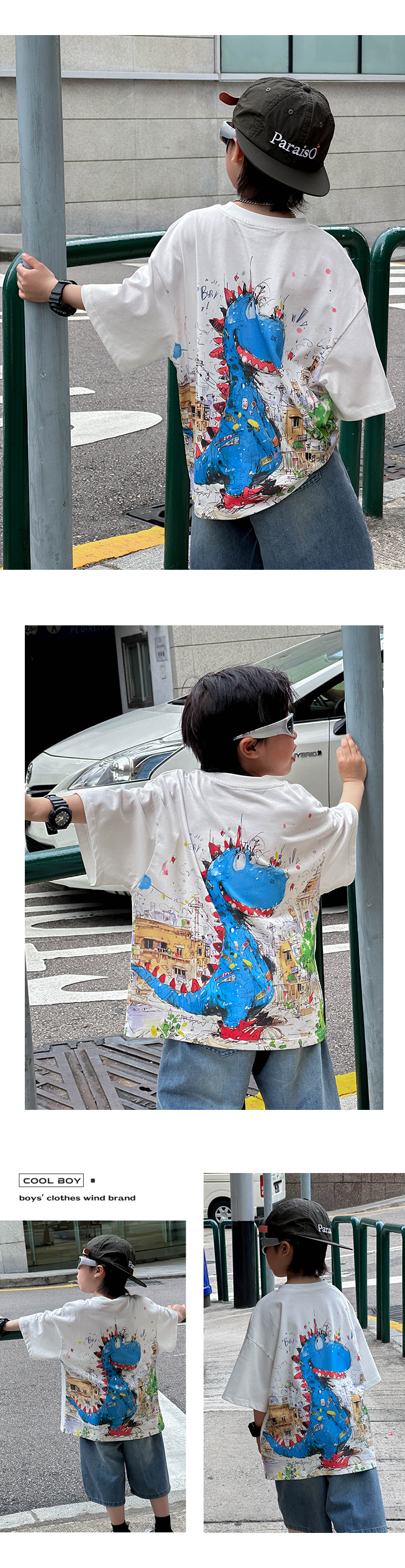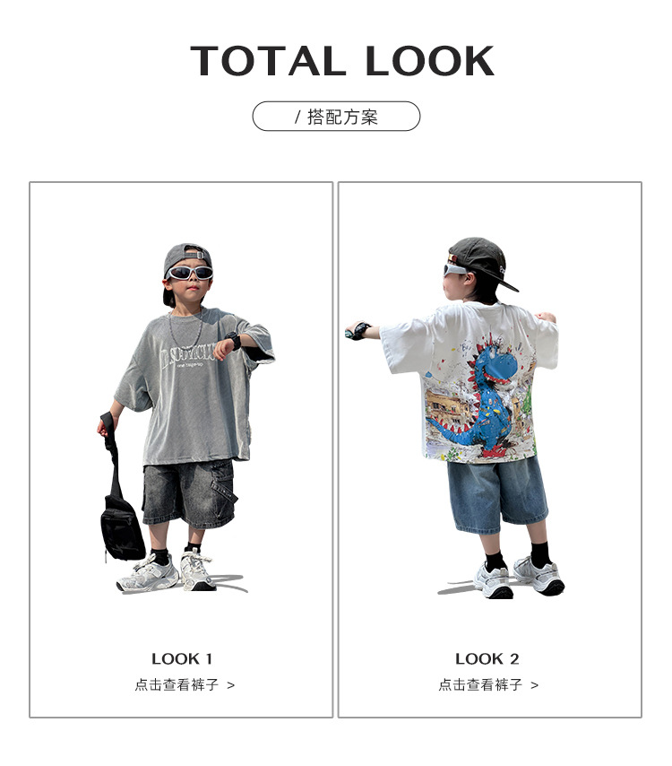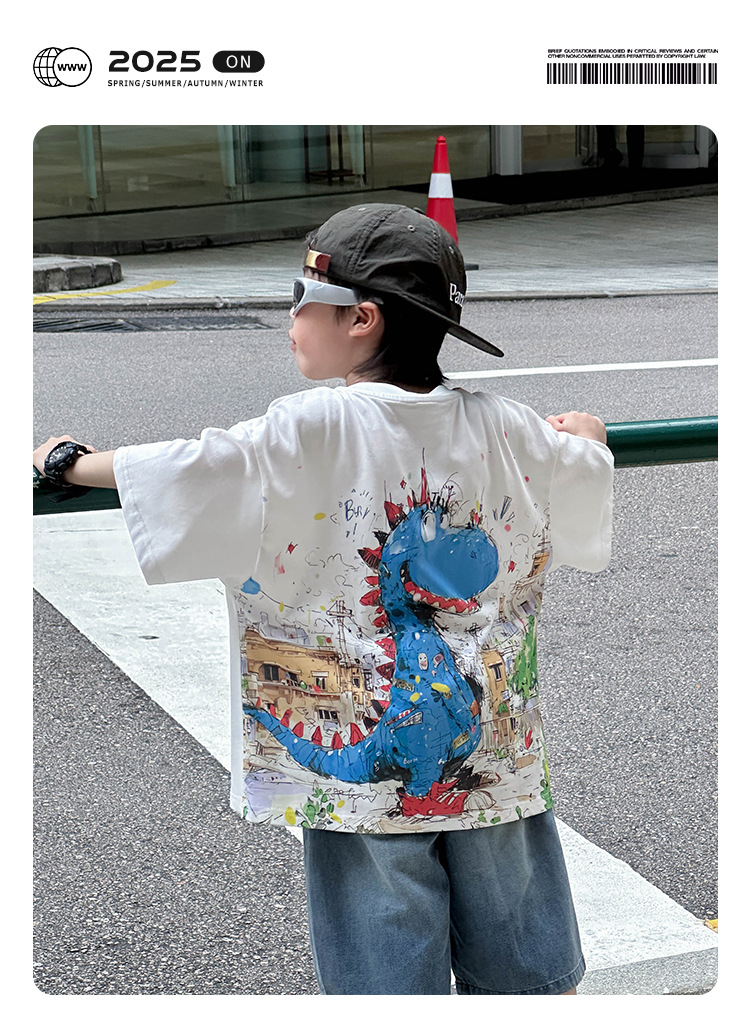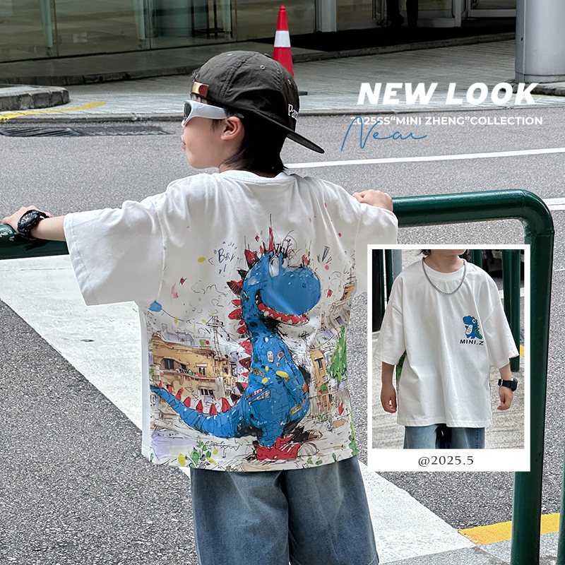 어린이 유행 티셔츠 2025 여름 새 소년 한국식 만화 풀오버 어린이를위한 올매치 얇은 여름 원피스스토어 가기