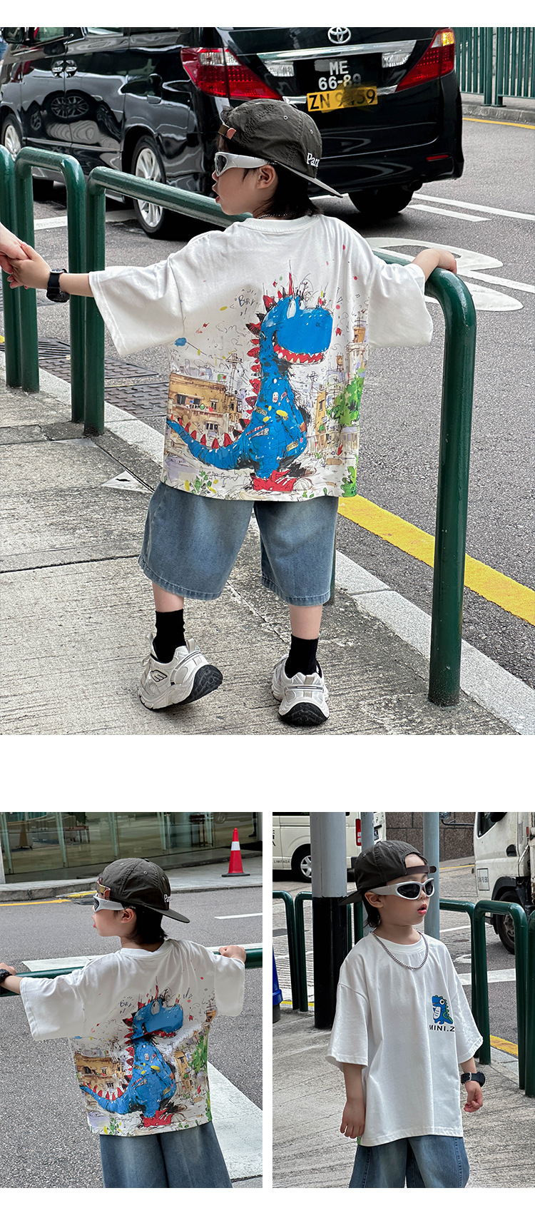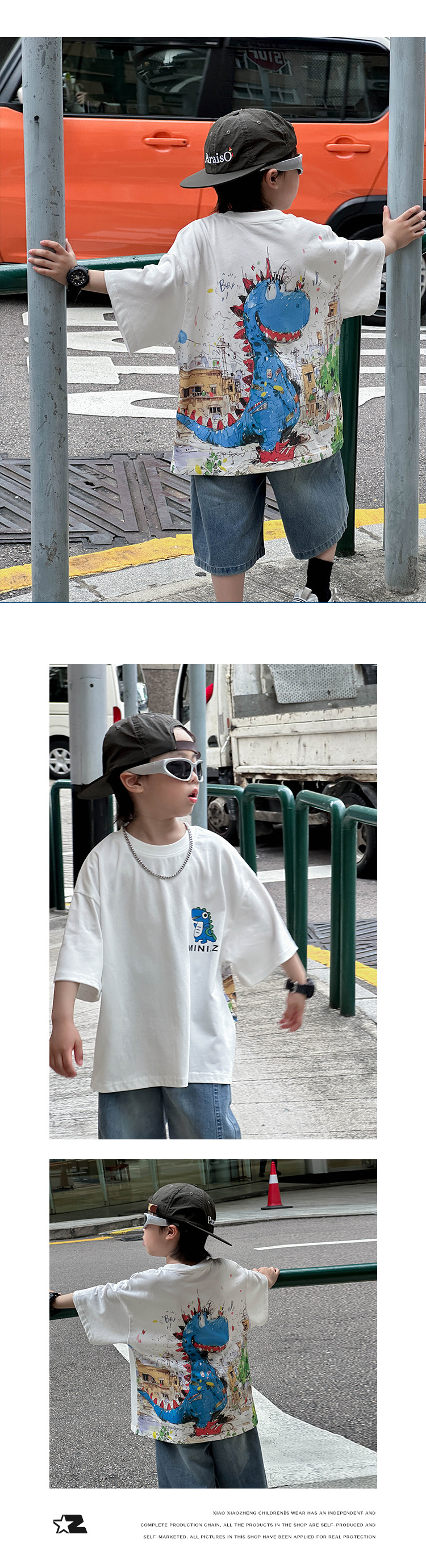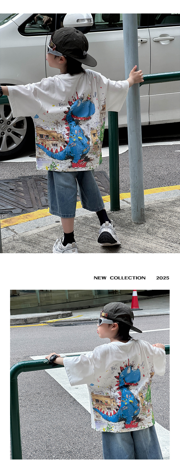 어린이 유행 티셔츠 2025 여름 새 소년 한국식 만화 풀오버 어린이를위한 올매치 얇은 여름 원피스스토어 가기