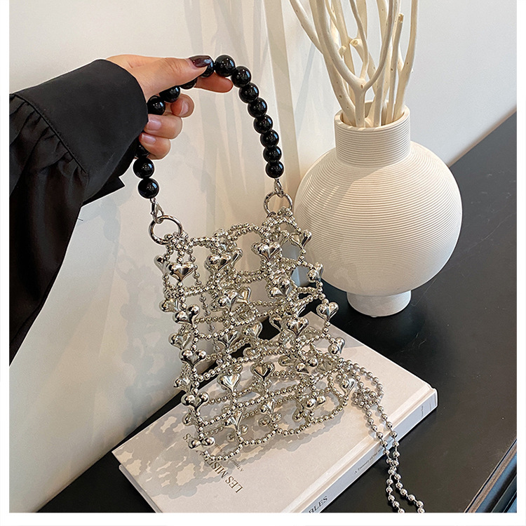 패셔너블한 아동용 가방 2025 새로운 사랑 구슬로 짠 크로스바디 작은 가방 트렌디하고 세련된 여성용 숄더백
