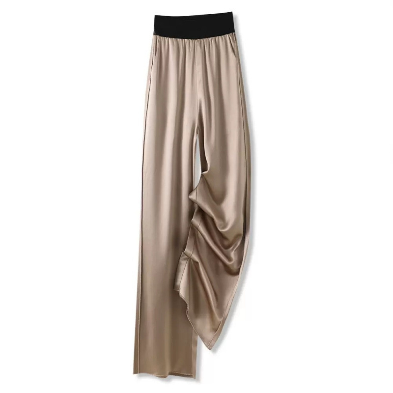 봄과 여름 2025 새로운 스타일 복용 Acetic Acid 좁은 넓은 다리 바지 높은 허리 스트레이트 바지 올매치 느슨한 슬리밍 캐주얼 바지